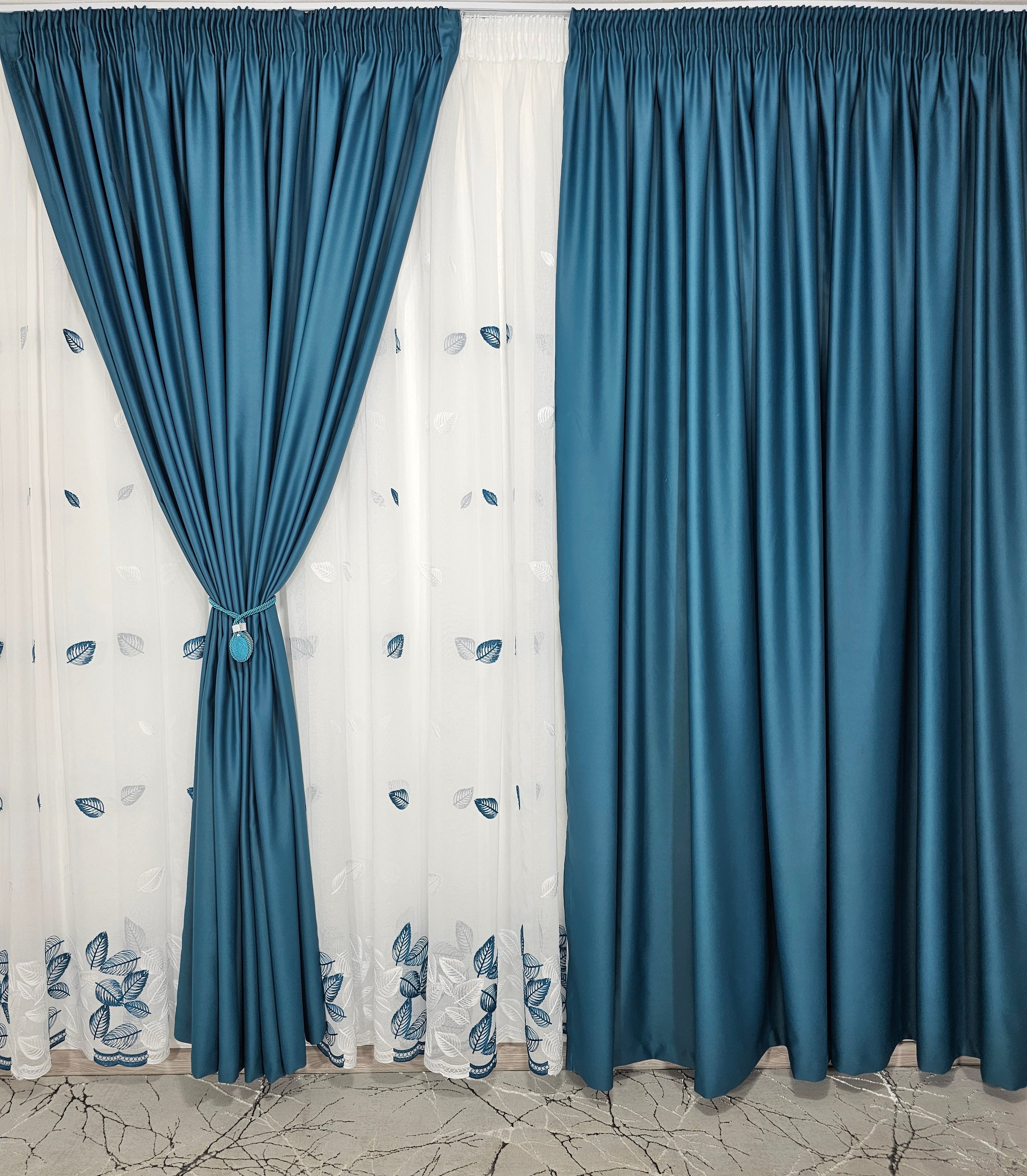 Perdeaua Bodi aduce prospețime și eleganță naturală în decorul casei. Confecționată din material plin ca textură tip in, cu fundal alb și imprimeu de frunze turcoaz, creează un contrast plăcut și un efect vizual modern, ideal pentru interioare luminoase și primitoare.