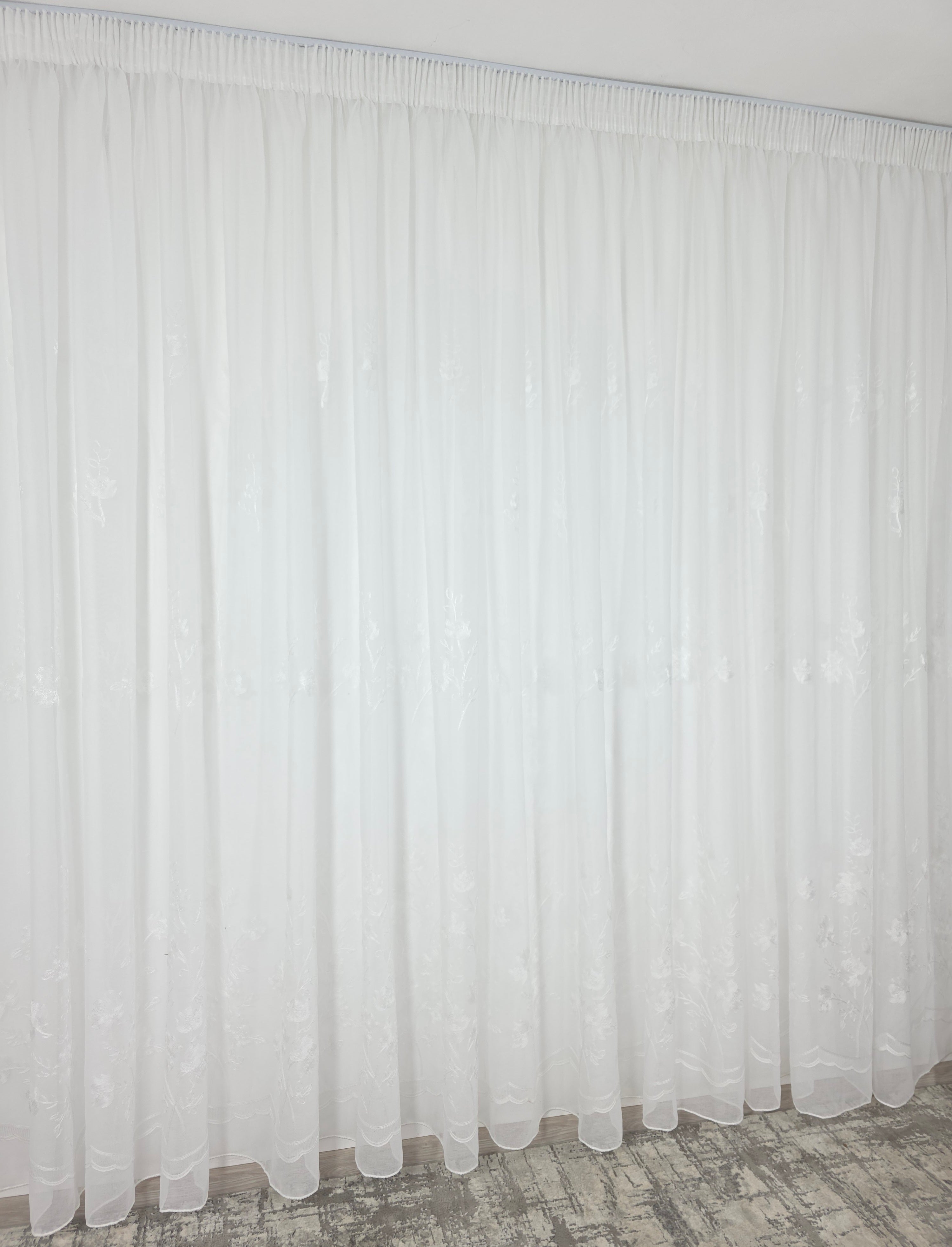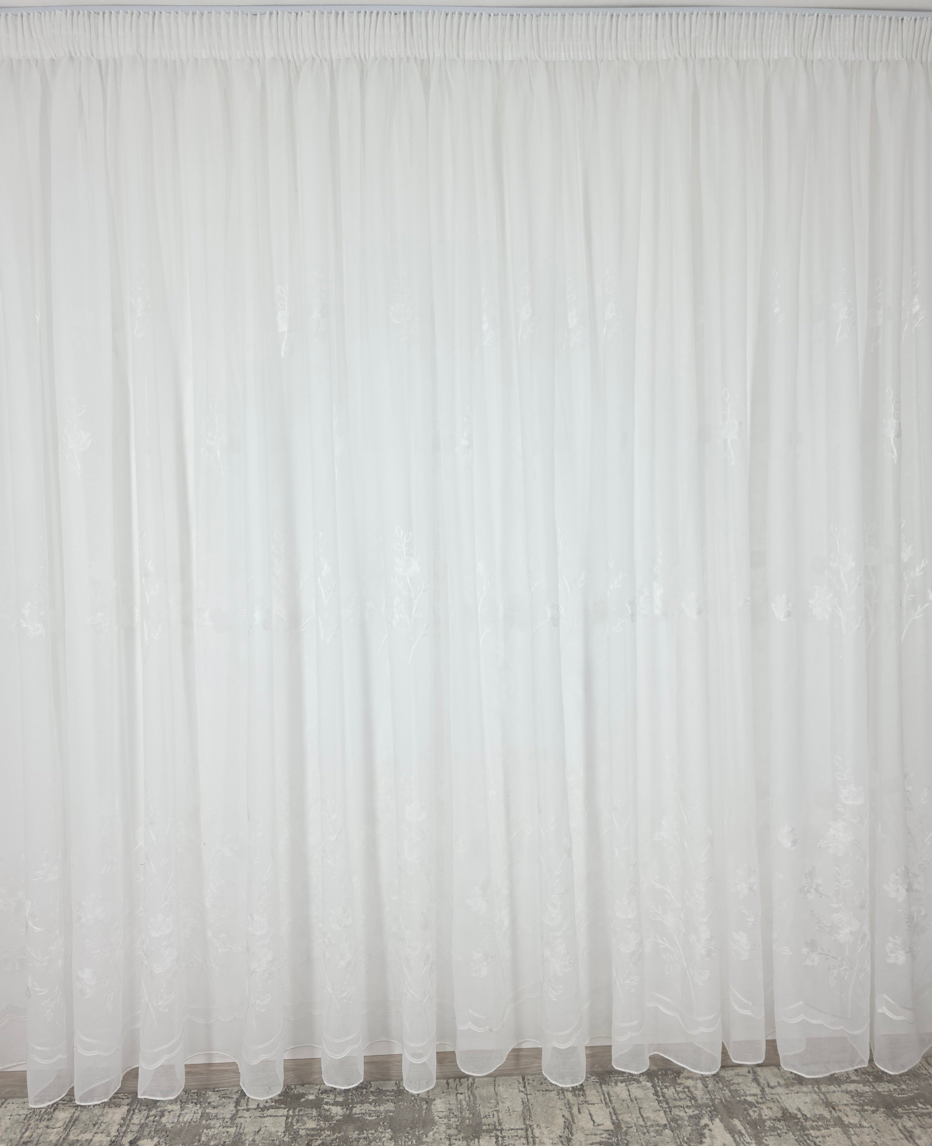 Perdea Albă Tip In cu Model Floral – Textură Plină și Eleganță Naturală