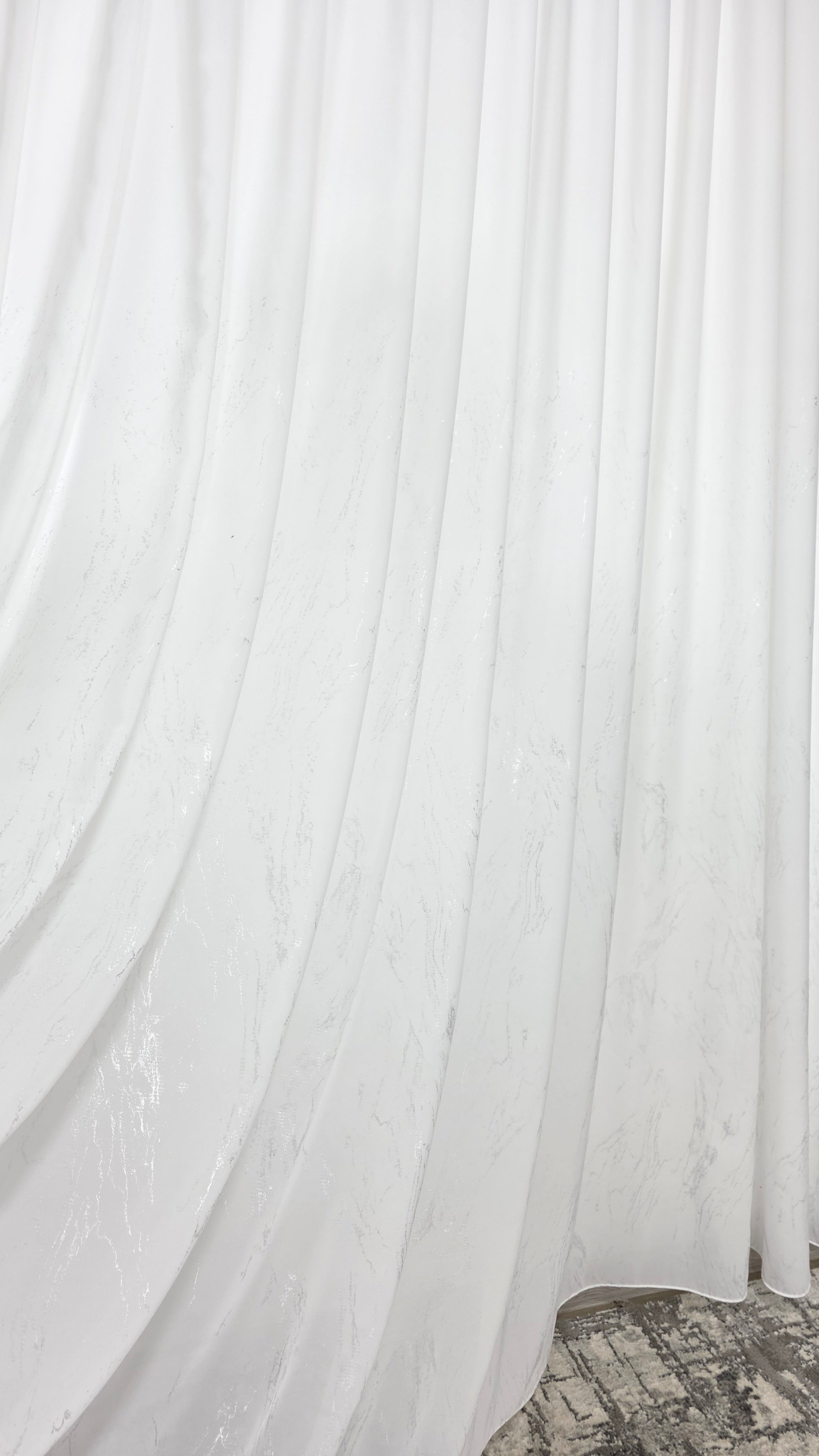 Prin combinația dintre finețea mătăsii albe și strălucirea discretă a inserțiilor argintii, această perdea aduce un aer elegant, modern și luminos – o alegere premium pentru un interior sofisticat. ✨