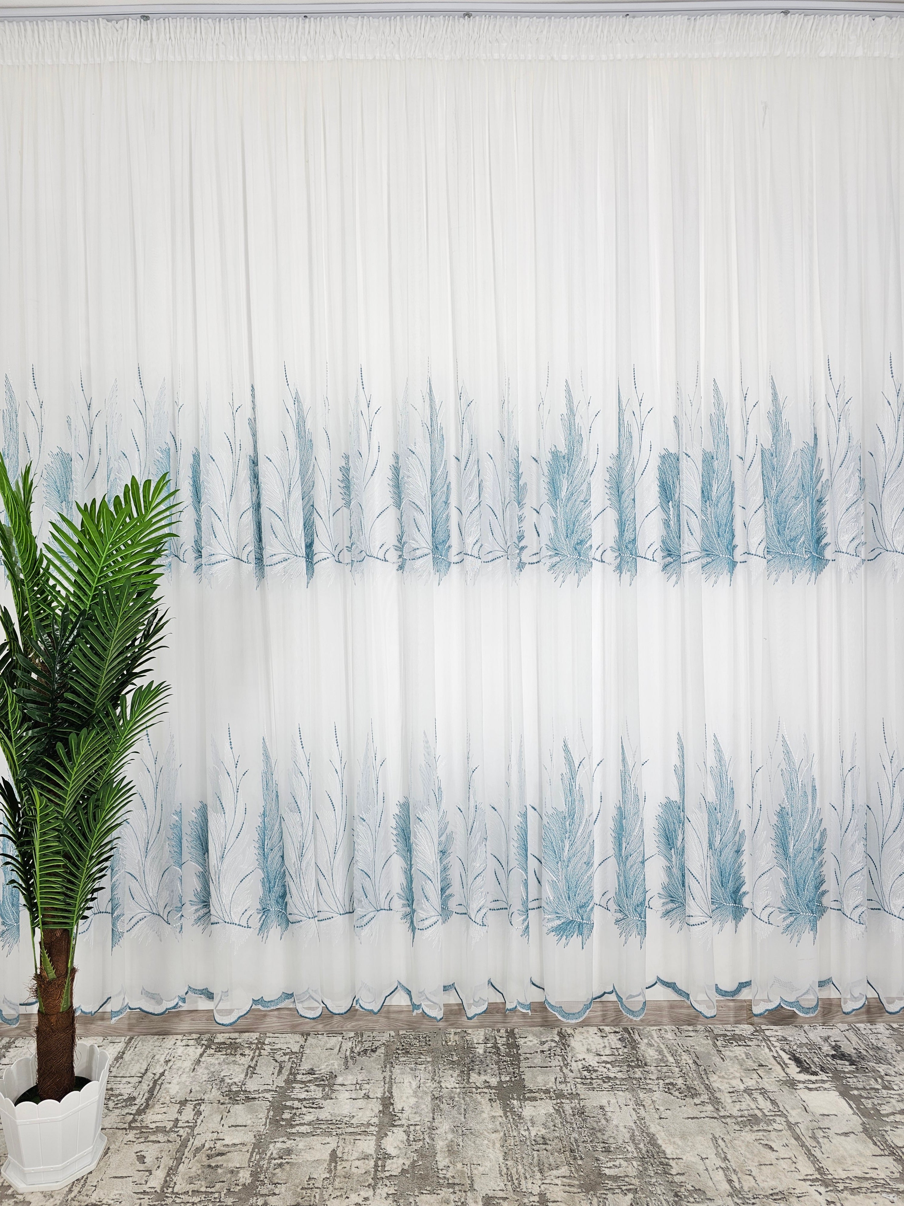 Prin îmbinarea dintre simplitatea albului și vitalitatea florilor turcoaz, această perdea aduce în casă armonie, prospețime și o notă sofisticată de design. 🌿