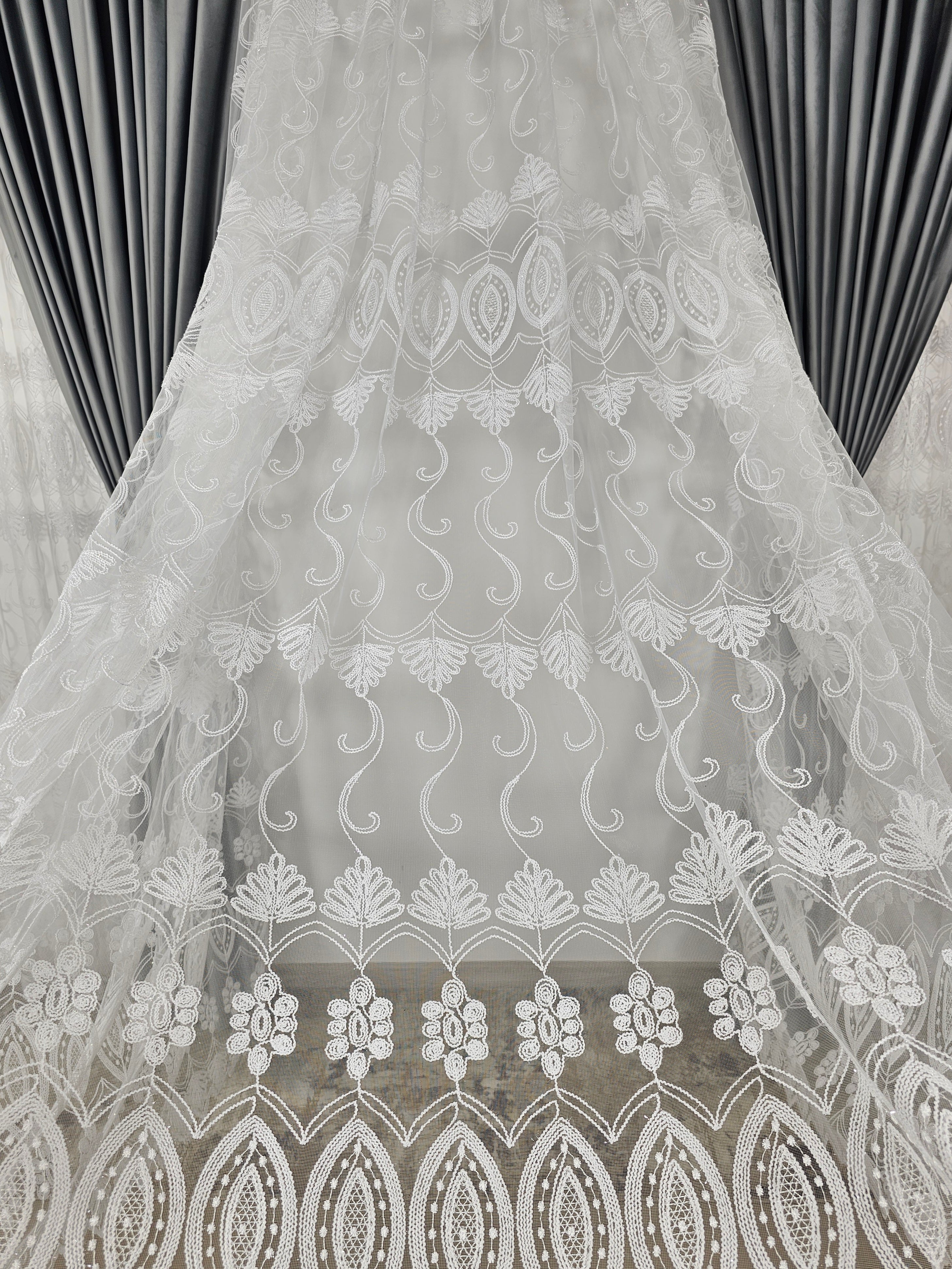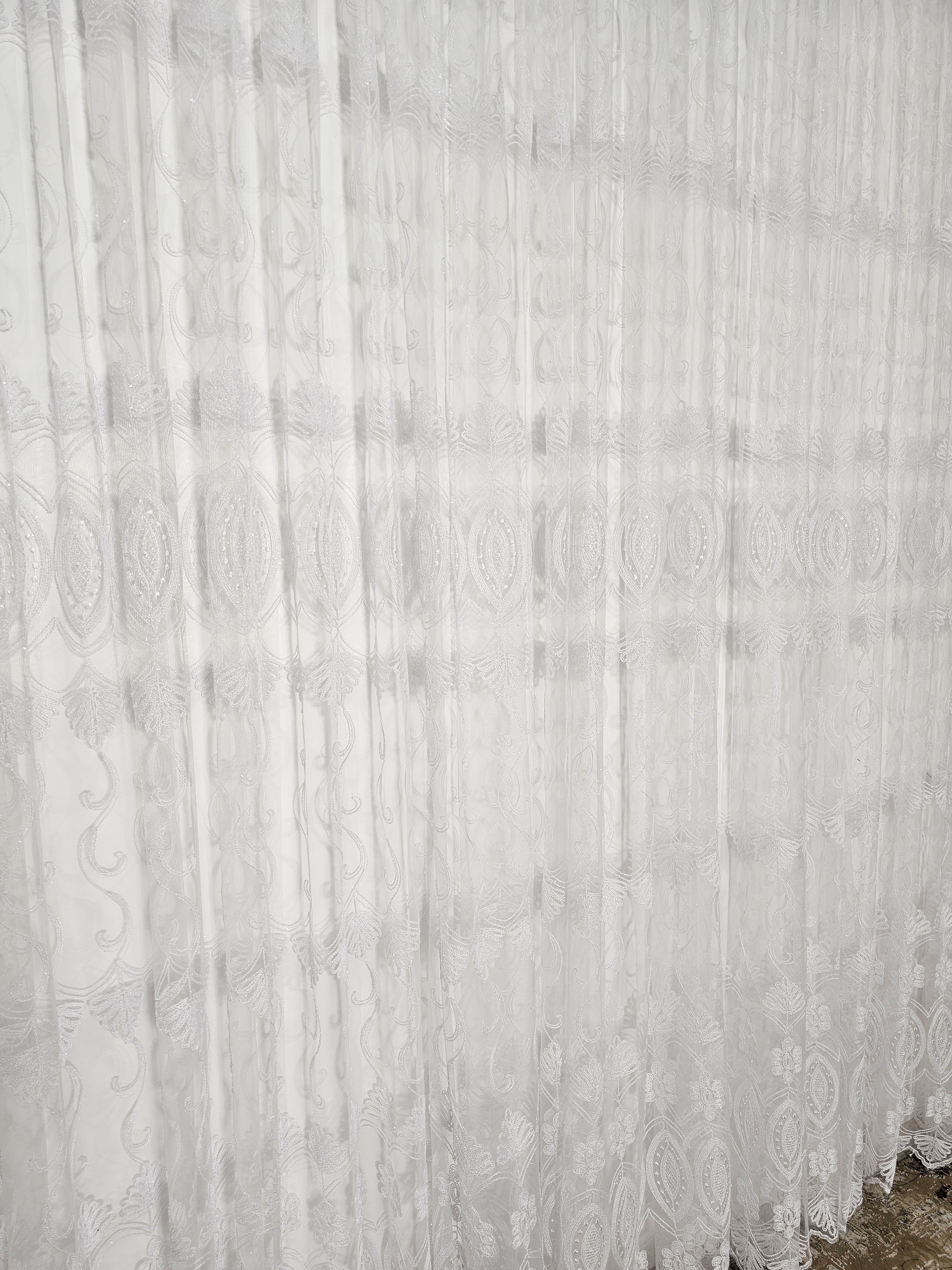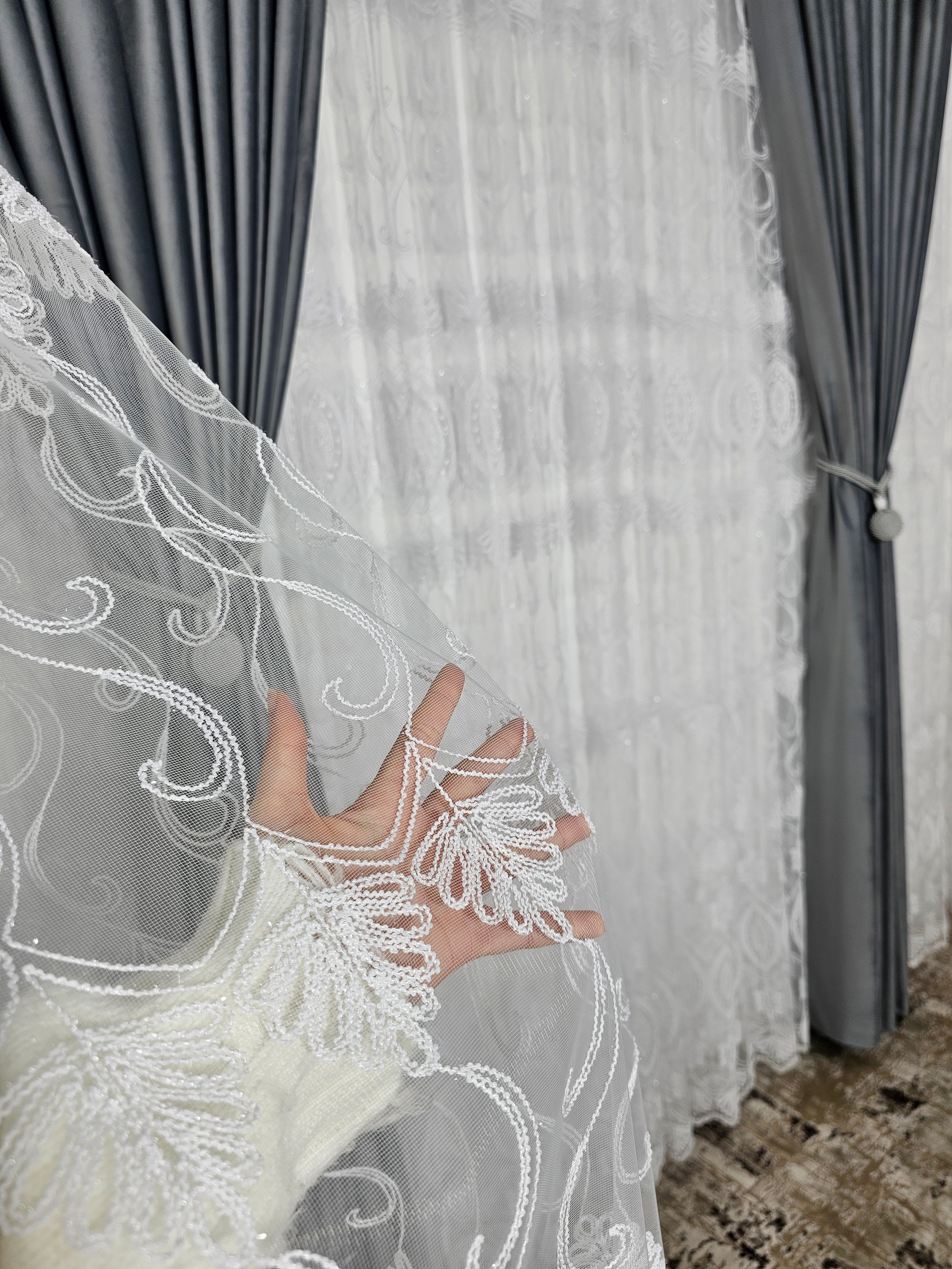 Perdeadin Tul cu Broderie Albă – Eleganță Pură și Luminozitate