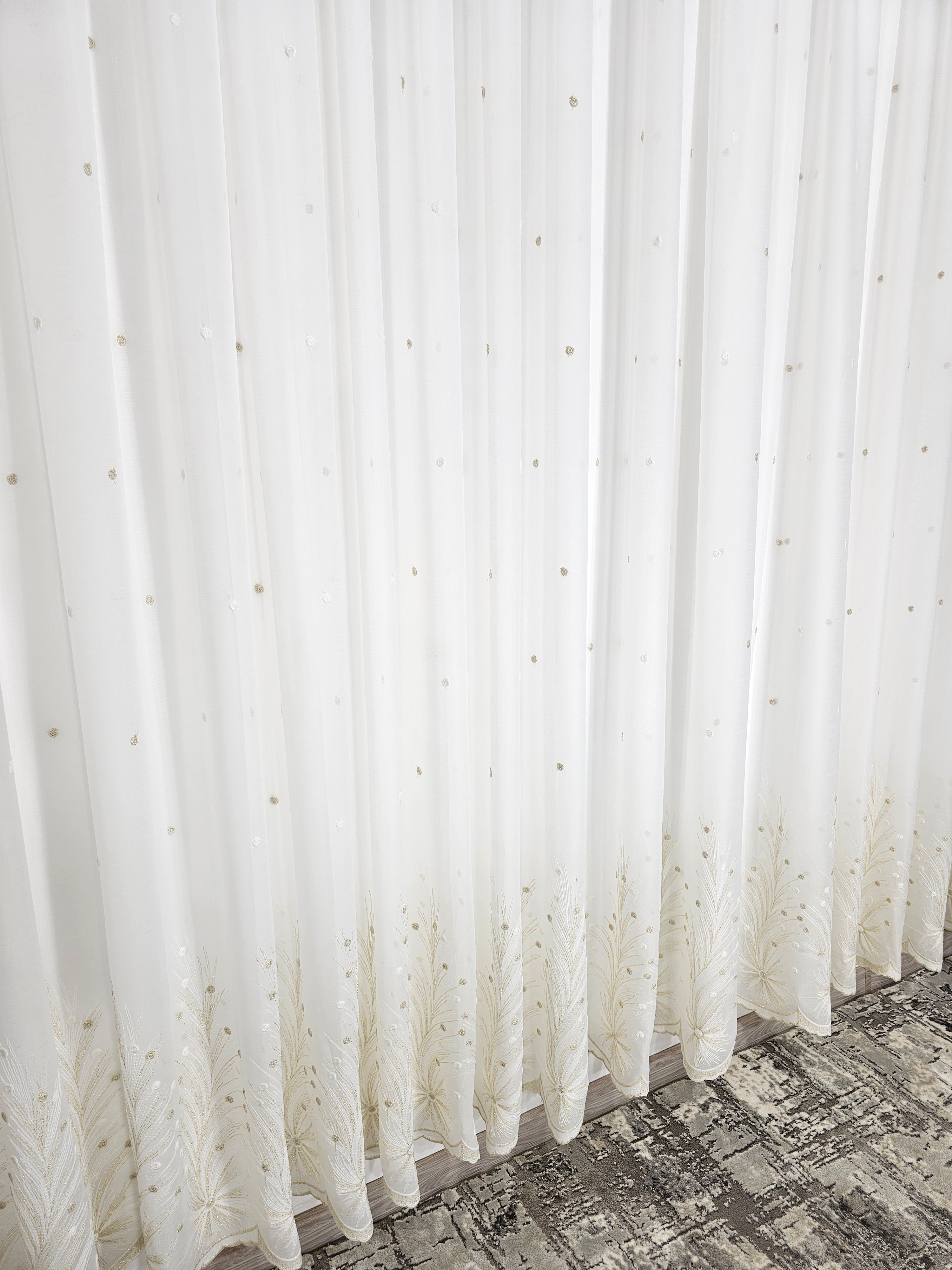 Perdeaua Eric aduce un aer rafinat și elegant în orice decor. Confecționată din material plin ca textură tip in, în nuanță ivory, este decorată cu flori crem delicate, oferind un aspect natural și luminos, ideal pentru interioare moderne și primitoare.