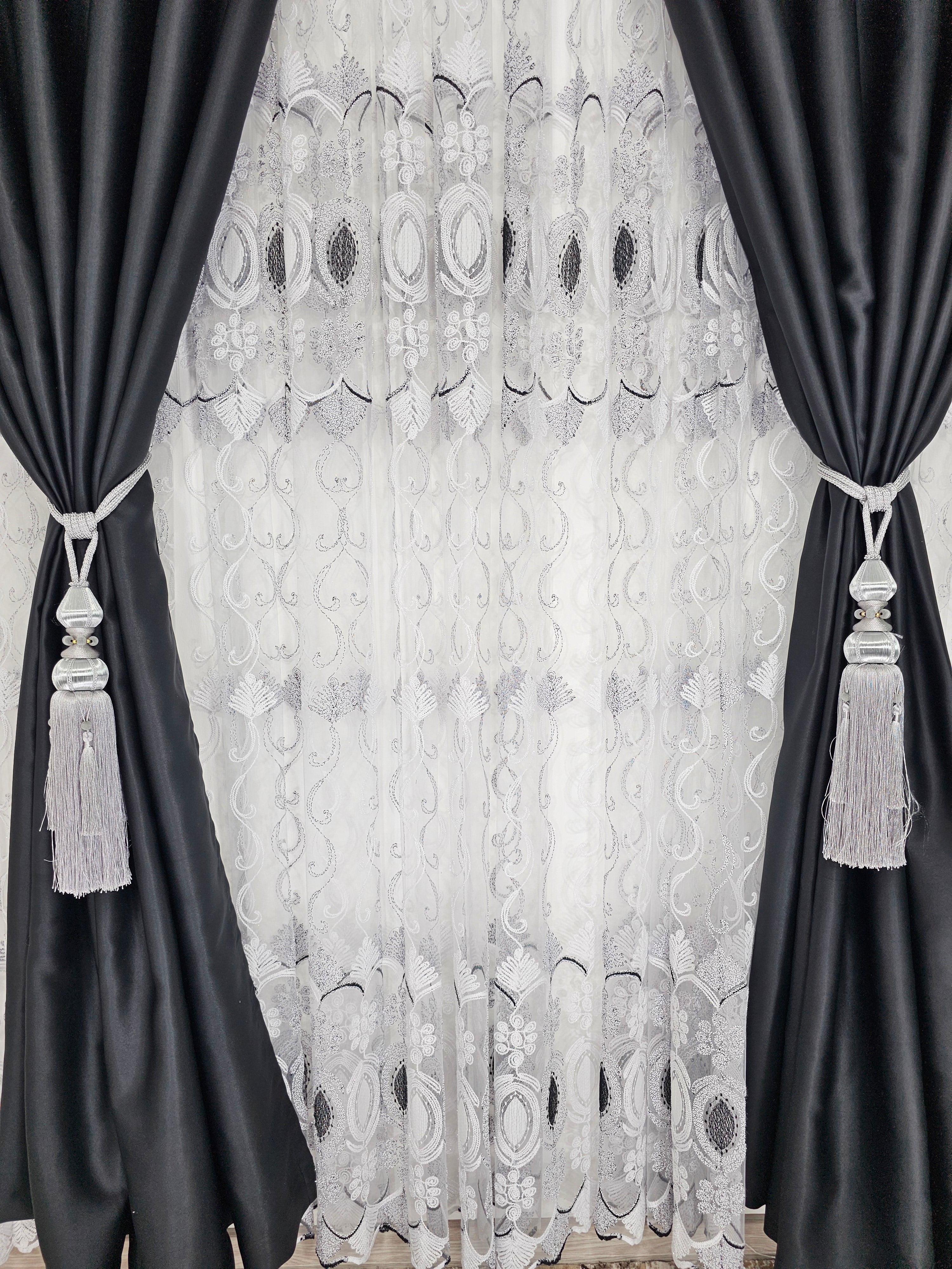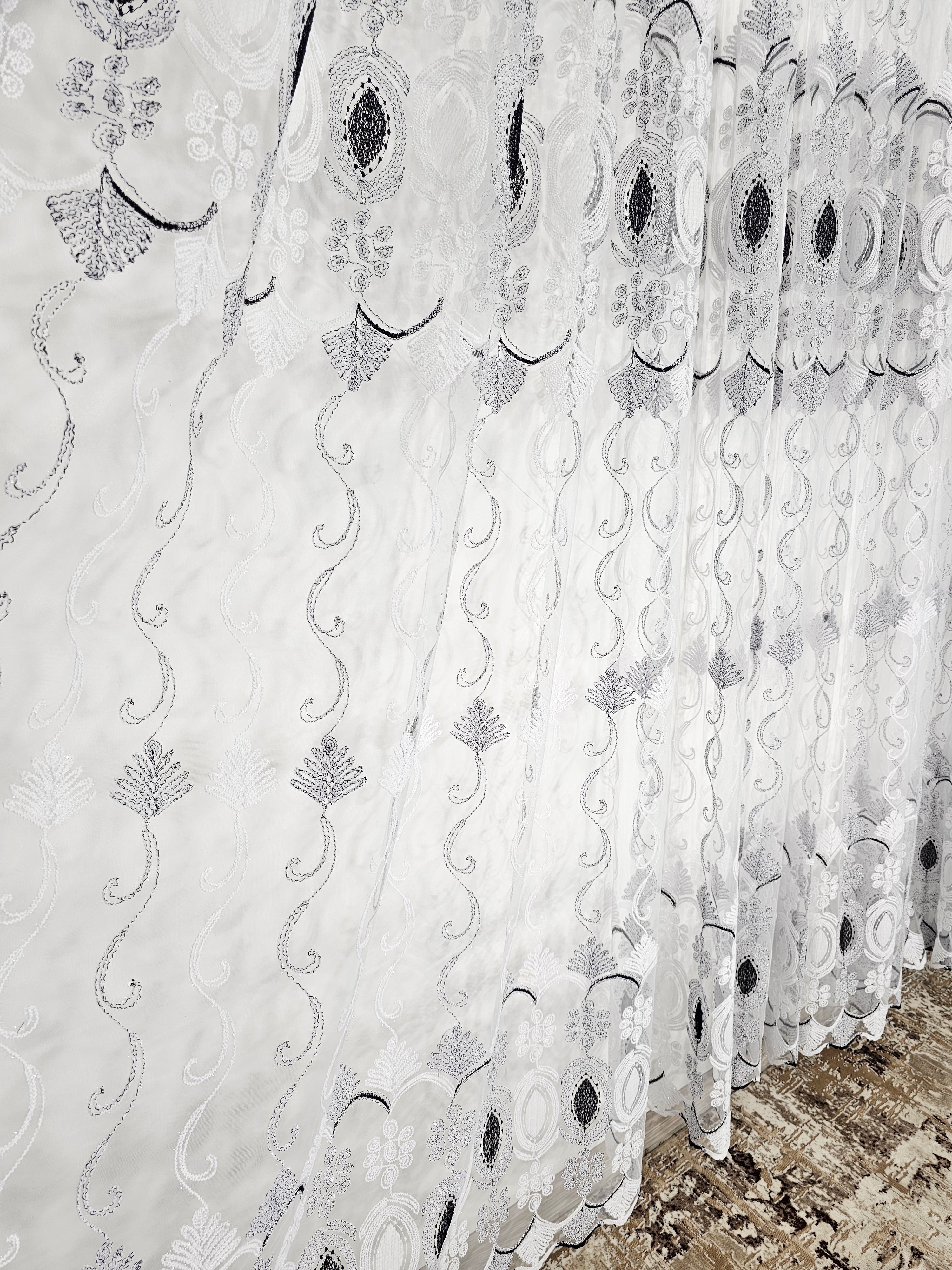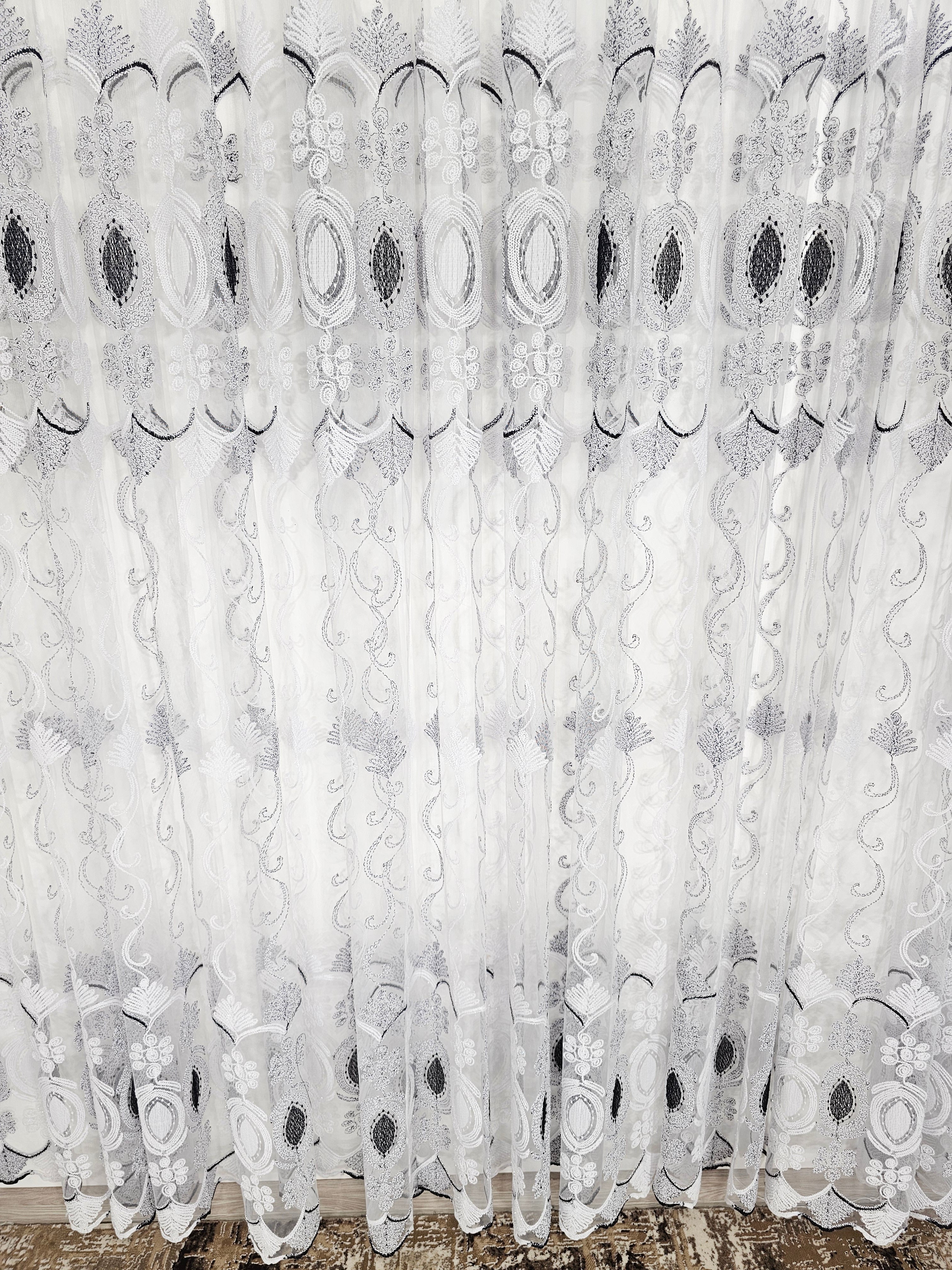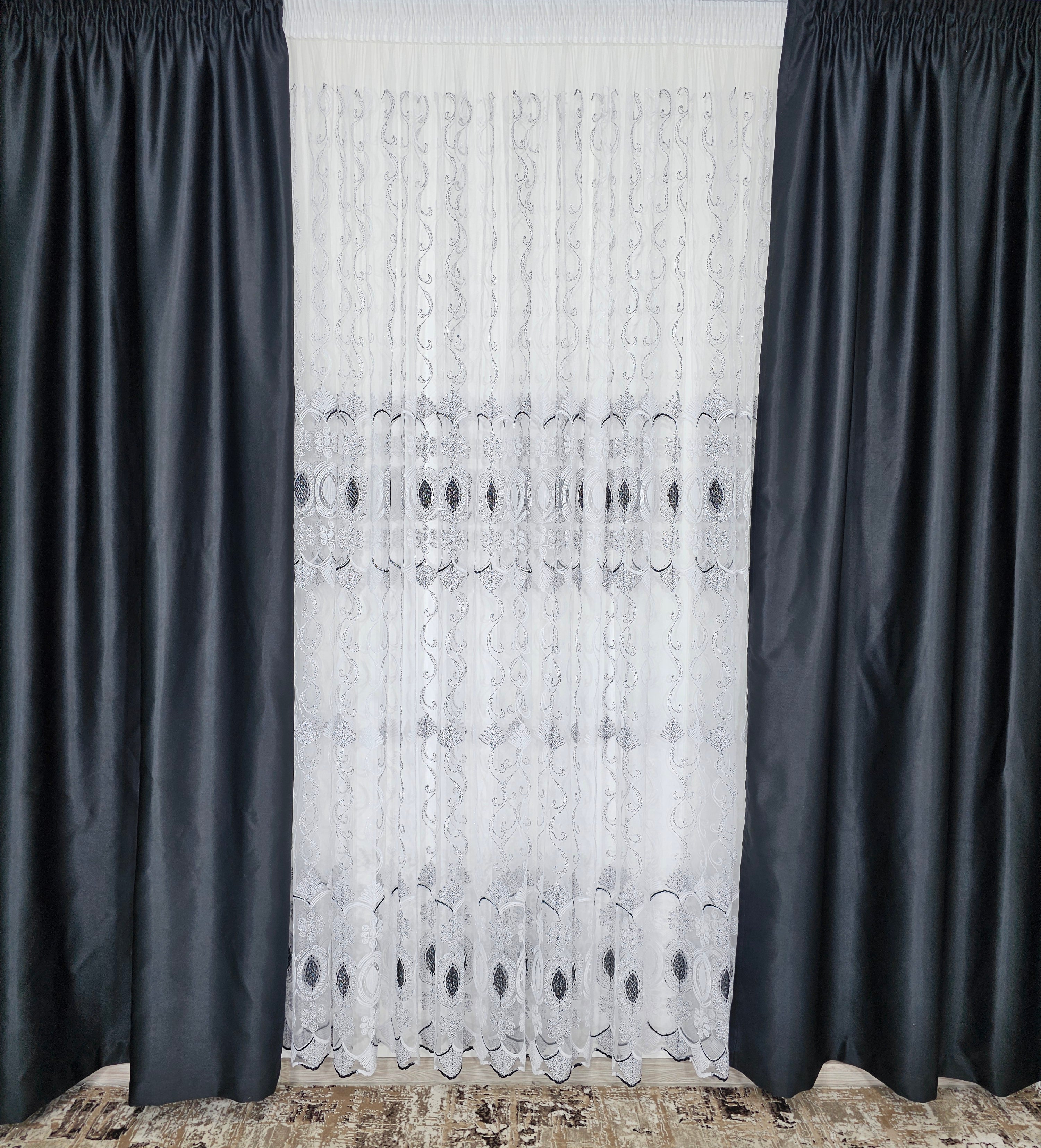 Adaugă un element de sofisticare și eleganță casei tale cu această perdea din tul alb cu negru. Designul său rafinat și combinația de culori aduc un contrast vizual plăcut, potrivit pentru orice stil de decor interior.
