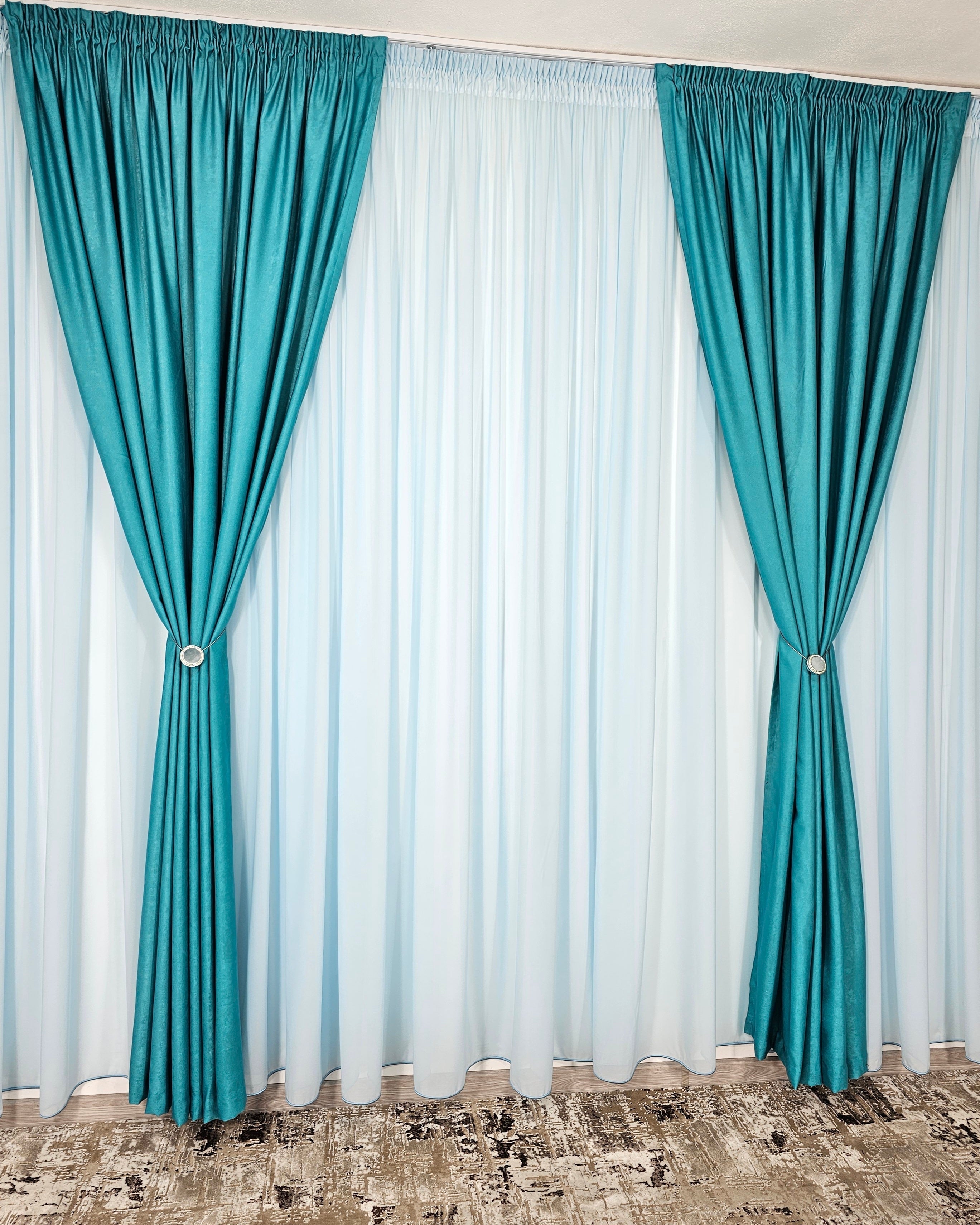 Transformați-vă Casa într-un Spațiu de Eleganță și Stil: Cu perdeaua noastră din mătase albastră, veți transforma fiecare încăpere într-un spațiu de eleganță și stil. Bucurați-vă de luxul și frumusețea oferite de această perdea deosebită și creați un decor de excepție care să vă reflecte personalitatea și gusturile rafinate.