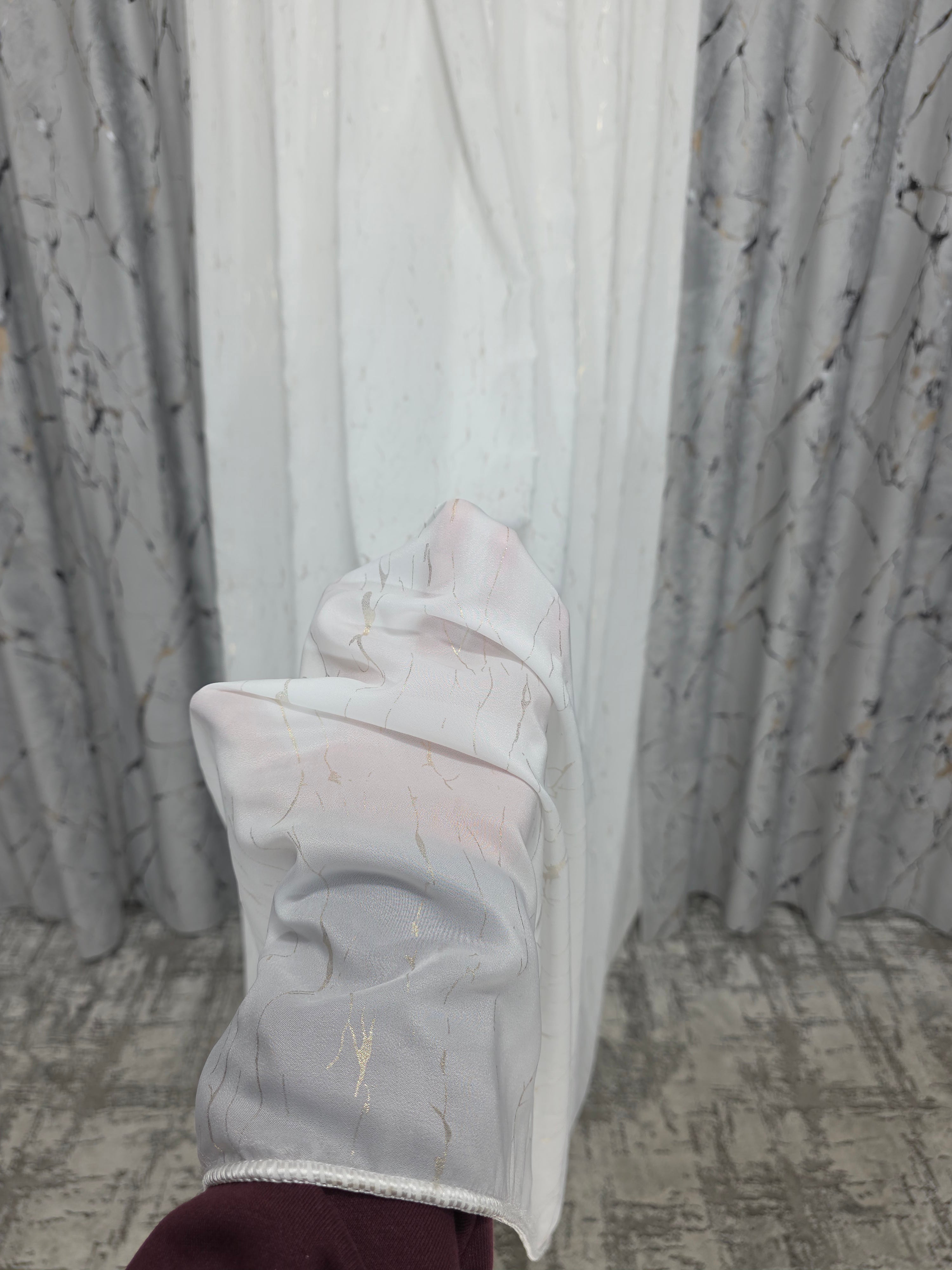 Perdea din mătase albă moale, plină, cu inserții aurii delicate (V1)
