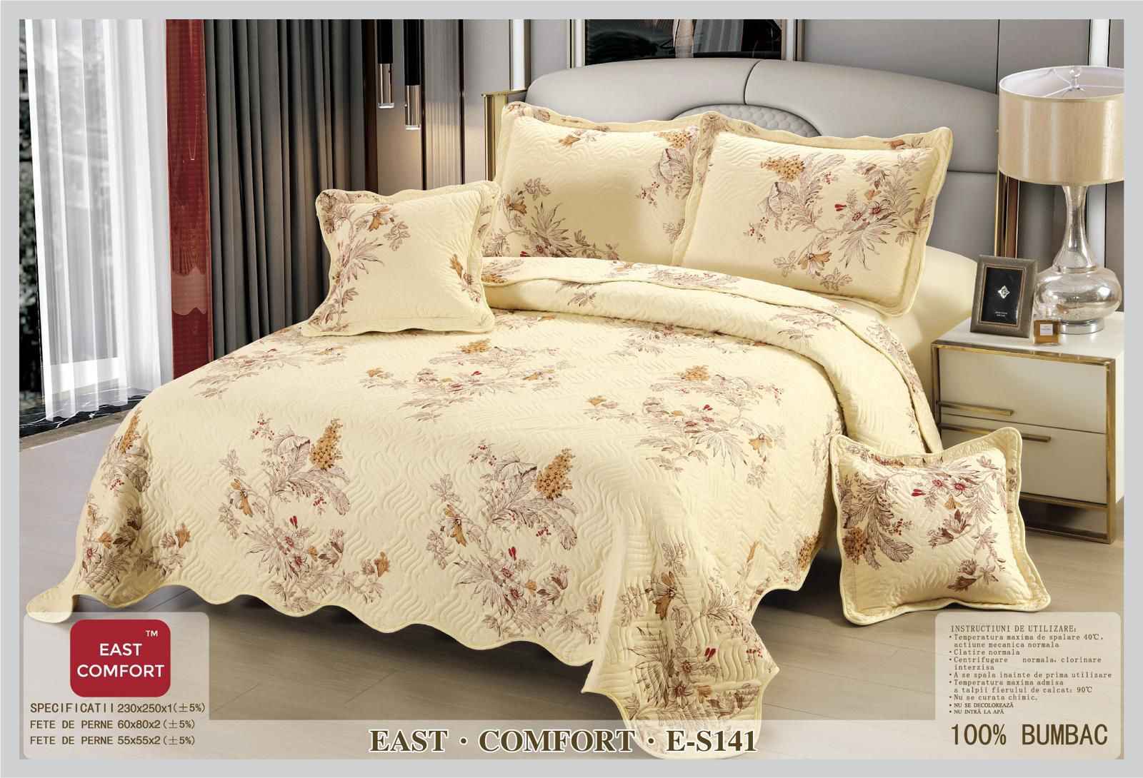 Set Cuvertura Pat Dublu Matlasata Bumbac + 4 fete perna ES141
