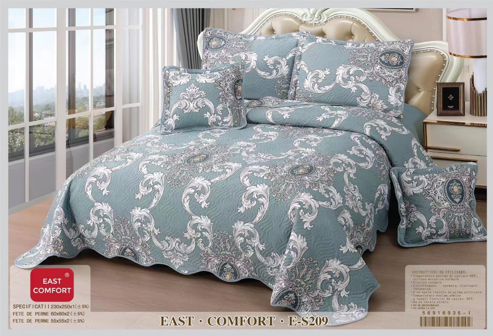 Set Cuvertura Pat Dublu Matlasata Bumbac + 4 fete perna ES209