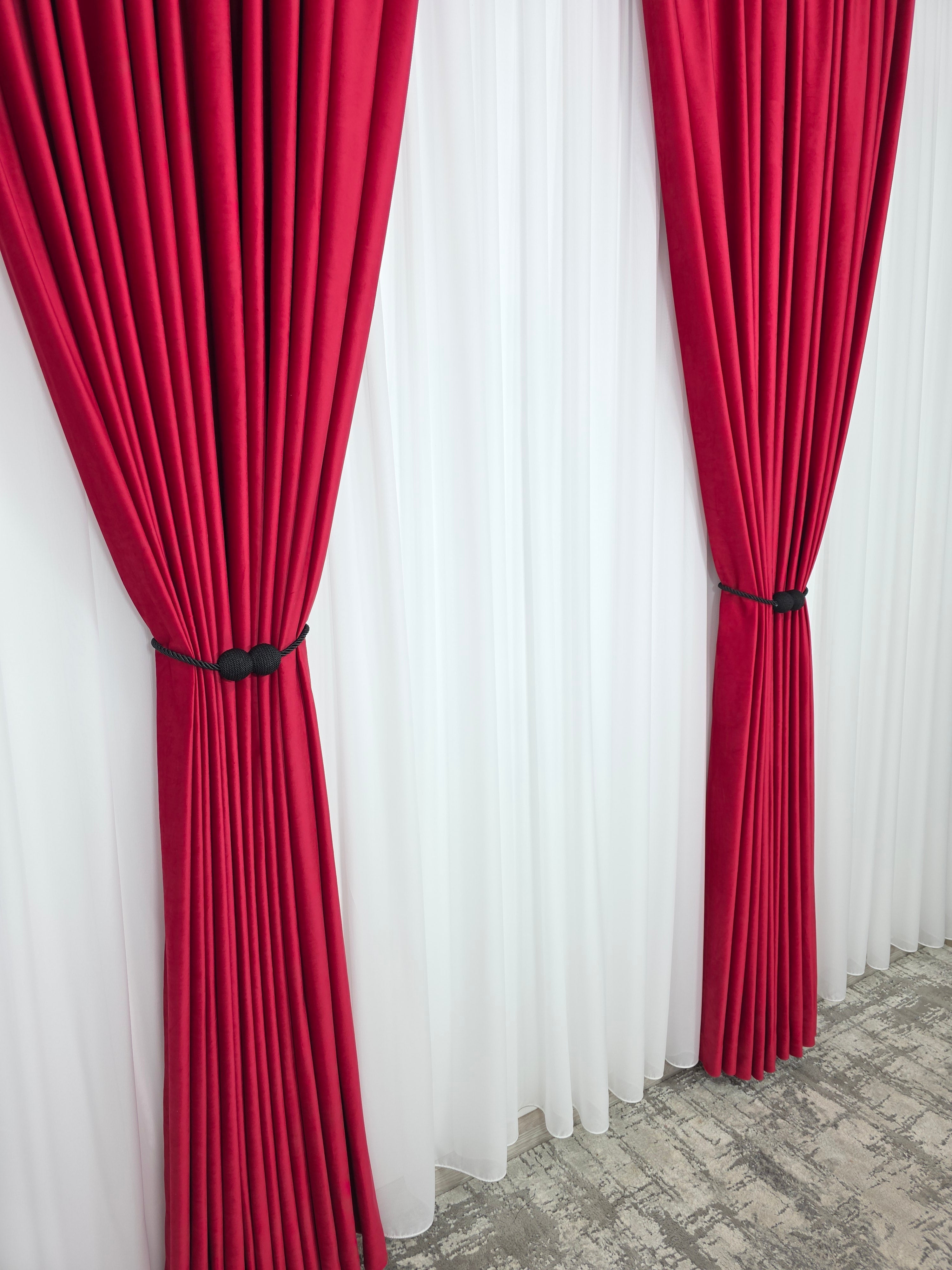 Set Dinamo: Perdea Voal Premium Si Draperie Catifea Rosu