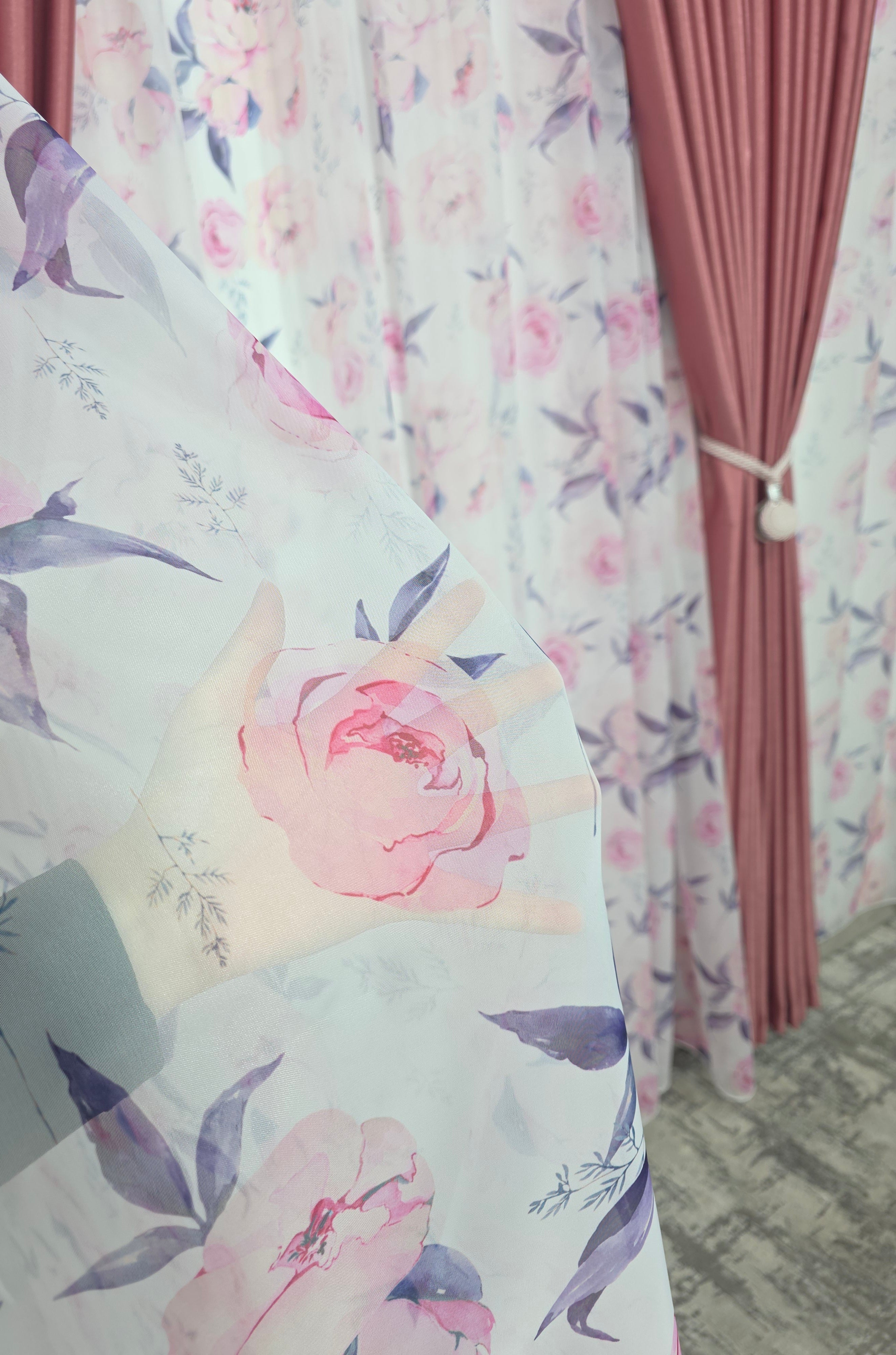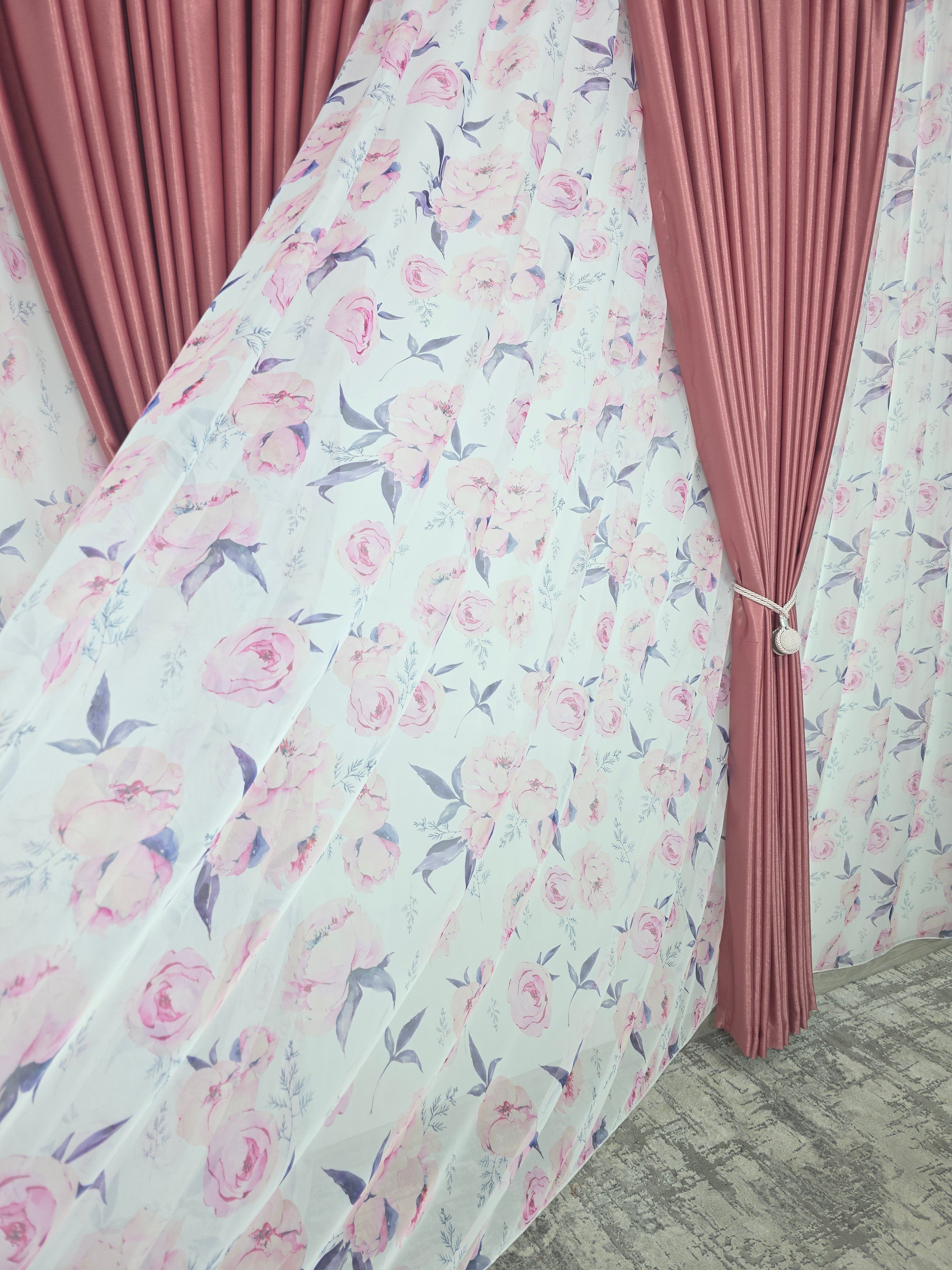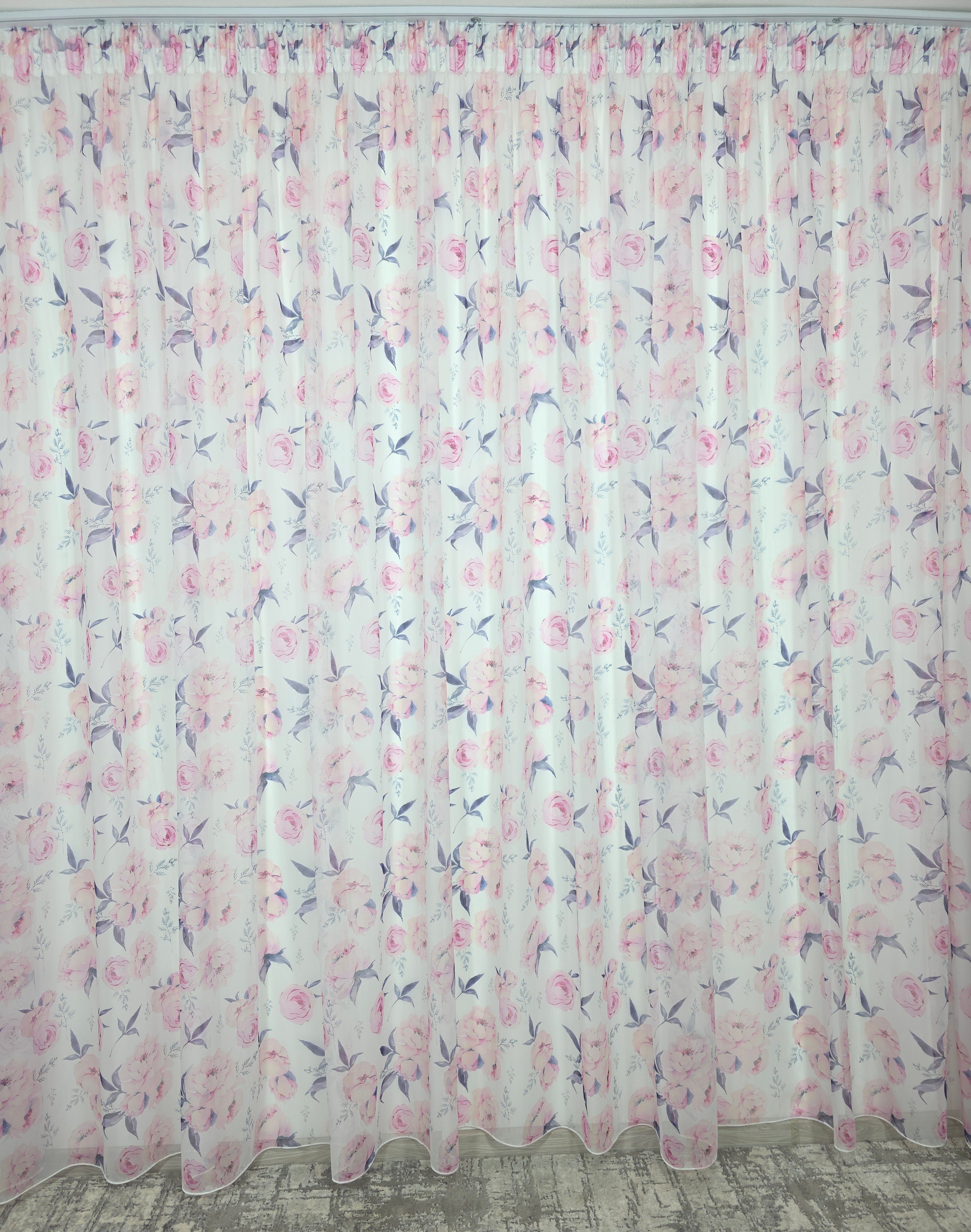 Set Perdea din Voal cu Model Floral & Draperie Soft Roz Semi-Opacă – Delicatețe Romantică și Eleganță Modernă