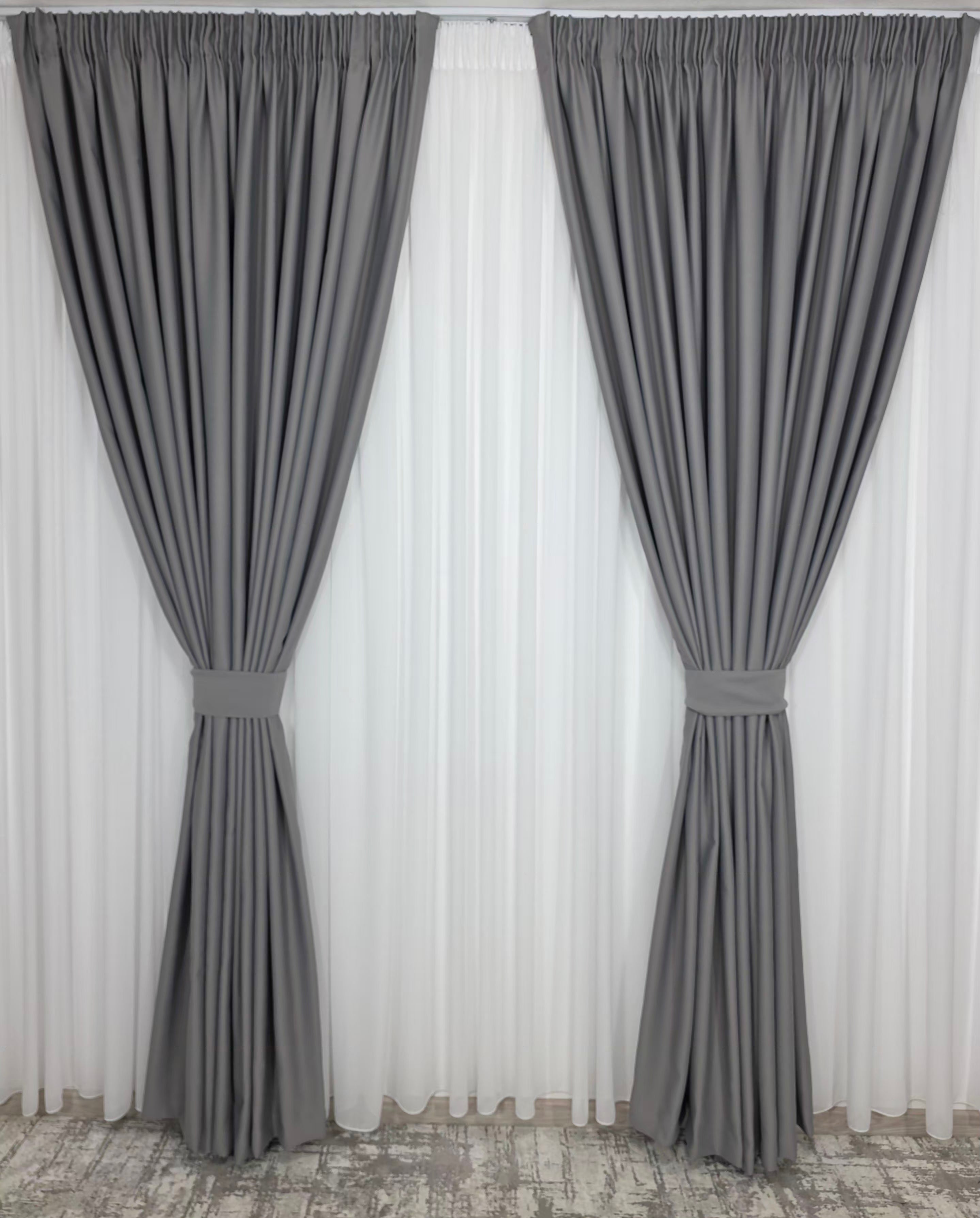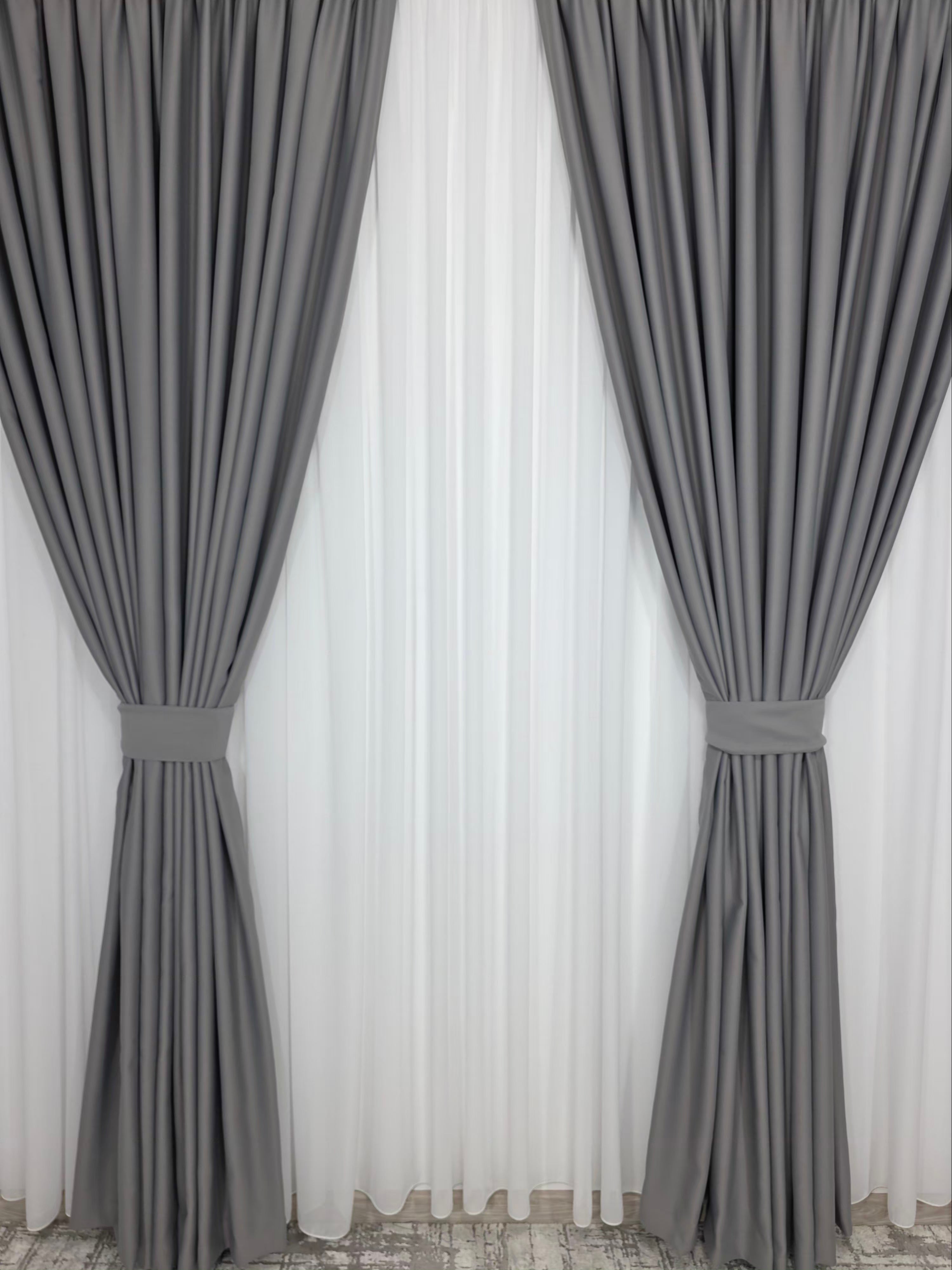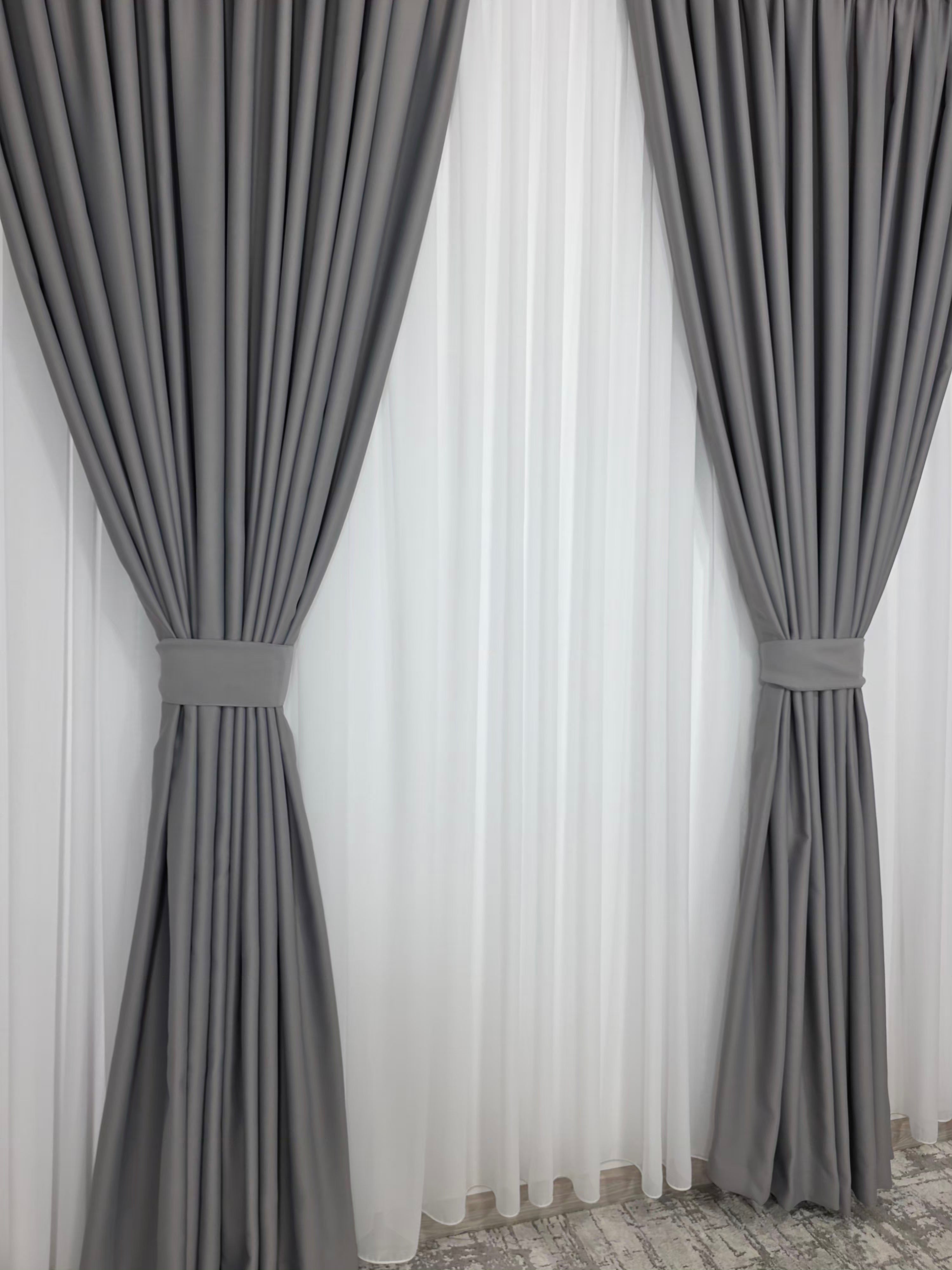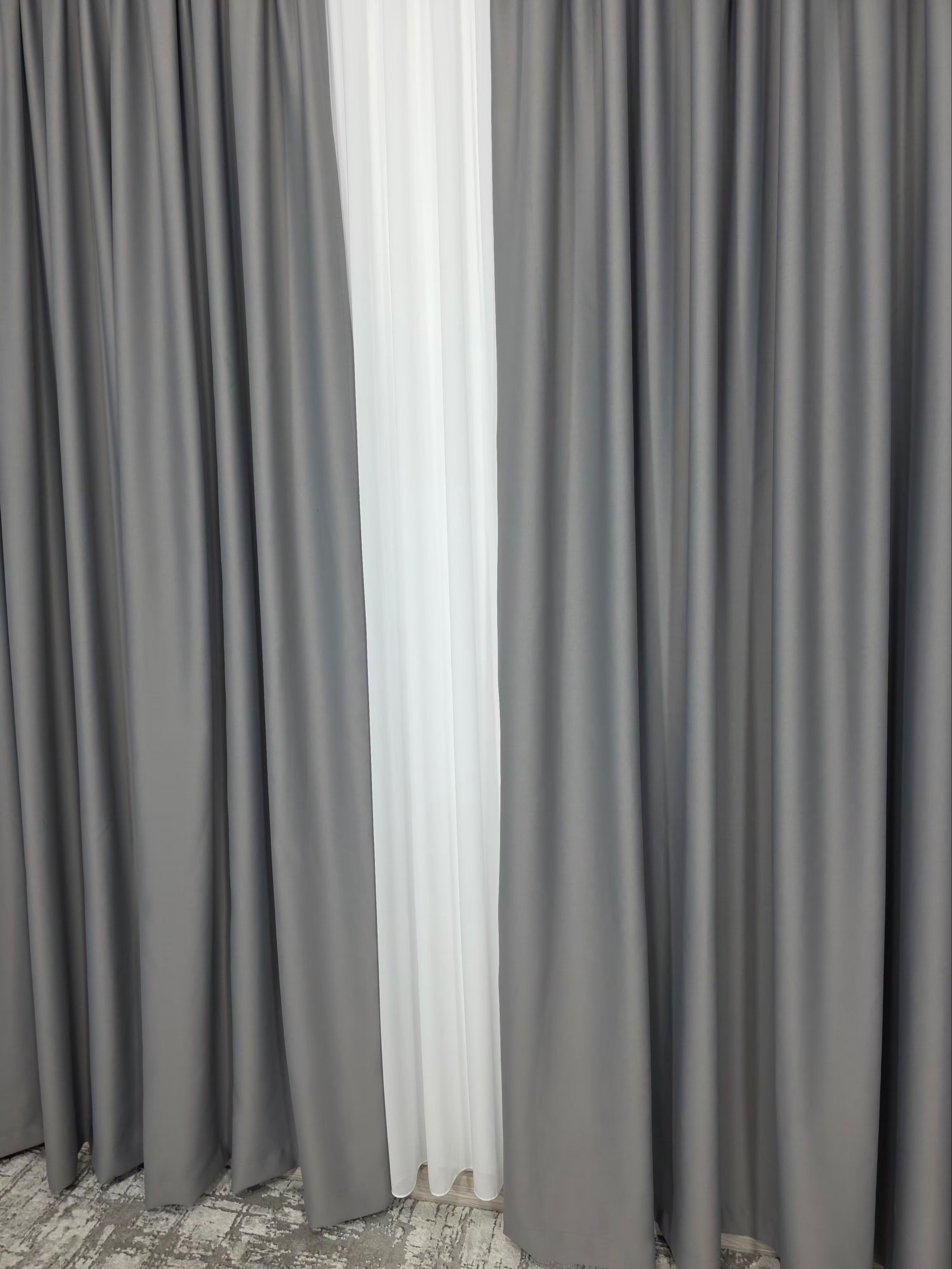 Acest set combină finețea voalului alb, ideal pentru a lumina și aerisi încăperea, cu funcționalitatea draperiei gri cenușiu blackout 98%, care asigură întuneric aproape total și un confort vizual superior. Un duo perfect pentru interioare moderne, minimaliste, nordice sau elegante.