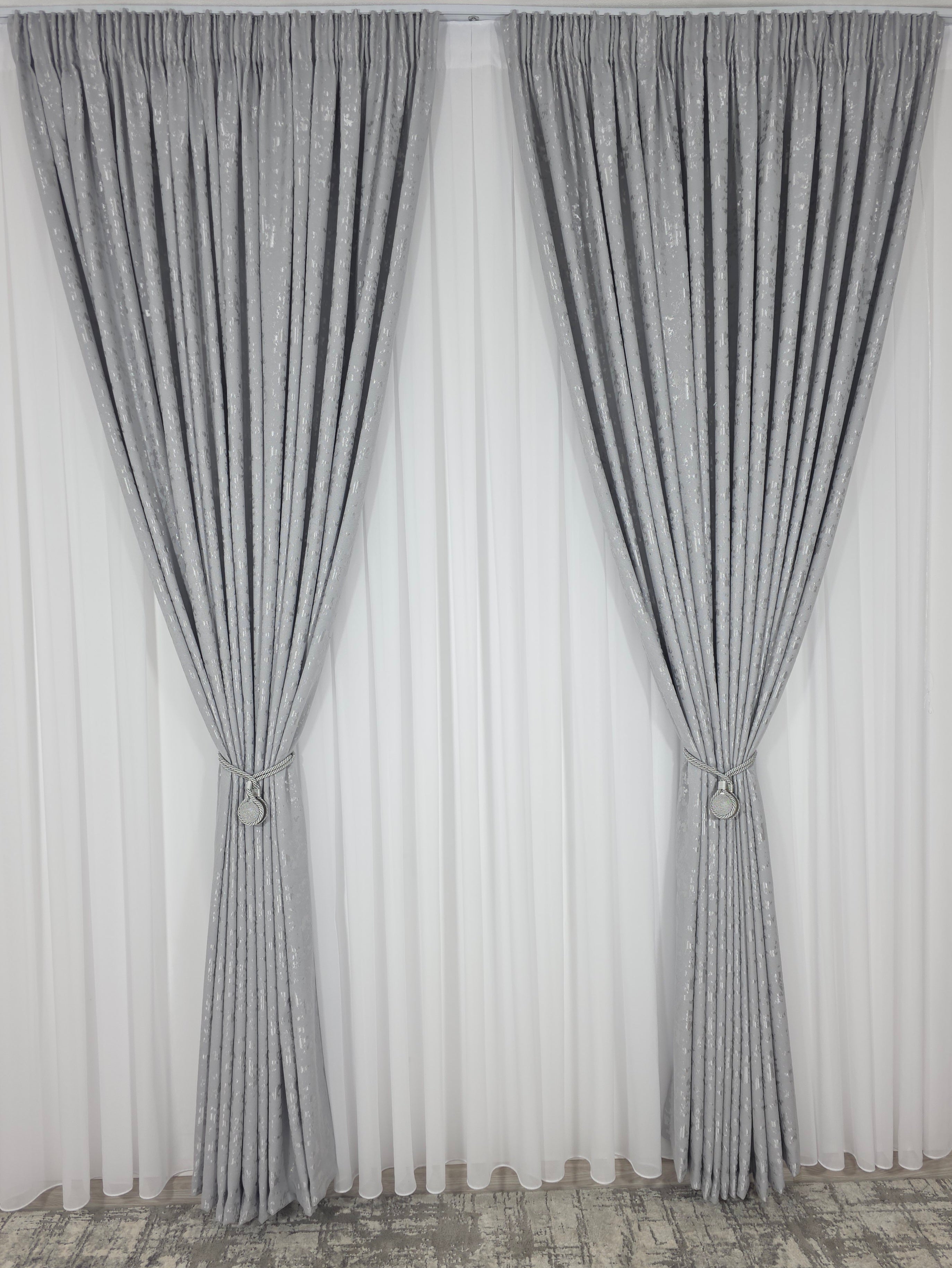 ✔ Contrast premium fără efort – perdea diafană + draperie texturată gri deschis. ✔ Versatilitate decorativă – ideal pentru dormitoare, livinguri, birouri sau spații comerciale luminoase. ✔ Control al luminii – lumină difuză ziua și filtrare eficientă atunci când dorești mai multă intimitate. ✔ Întreținere minimă – spălare la 30 °C, montaj umed, aspect neted fără călcat. ✔ Durabilitate – materiale rezistente la decolorare, concepute să-și păstreze forma și culoarea în timp.