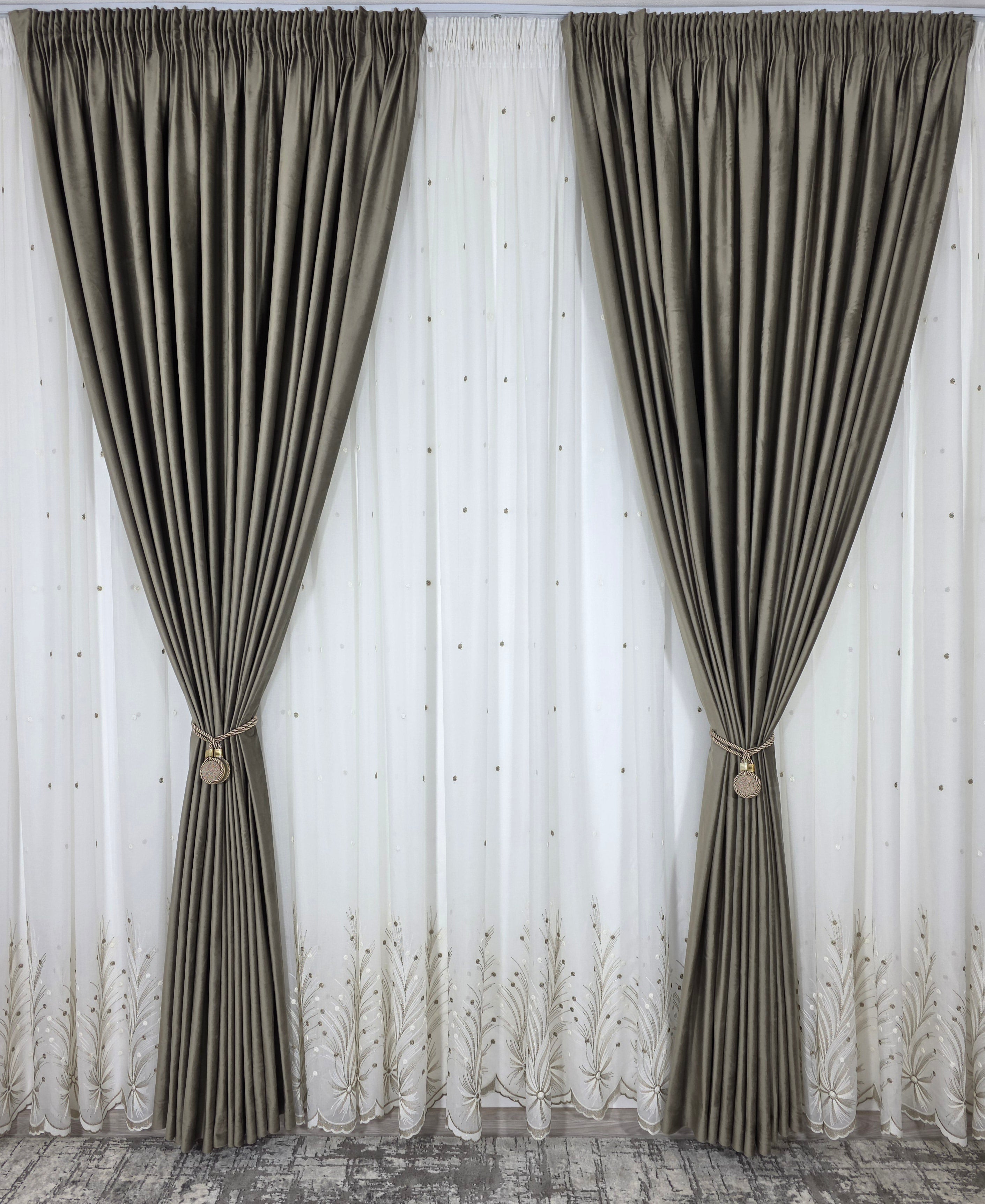 Prin combinația dintre finețea naturală a perdelei ivoire brodate și eleganța profundă a catifelei bej închis, acest set aduce în casă un aer modern, cald și sofisticat – o alegere premium, mereu actuală. ✨