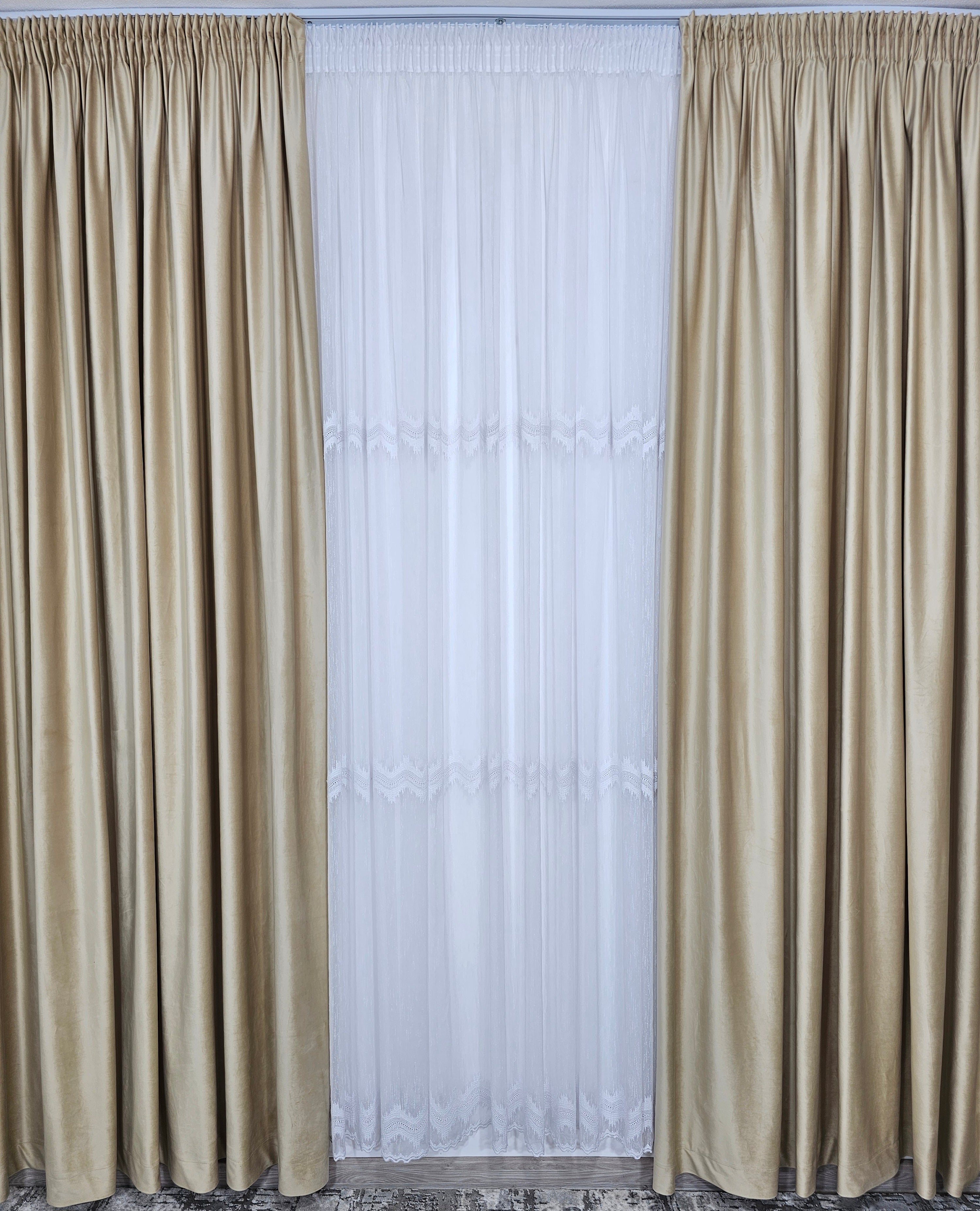 Alege Setul Perdea Borangic cu Broderie & Draperie Catifea Crem pentru a aduce echilibru, lumină și confort în casa ta – o combinație rafinată ce inspiră liniște și căldură.