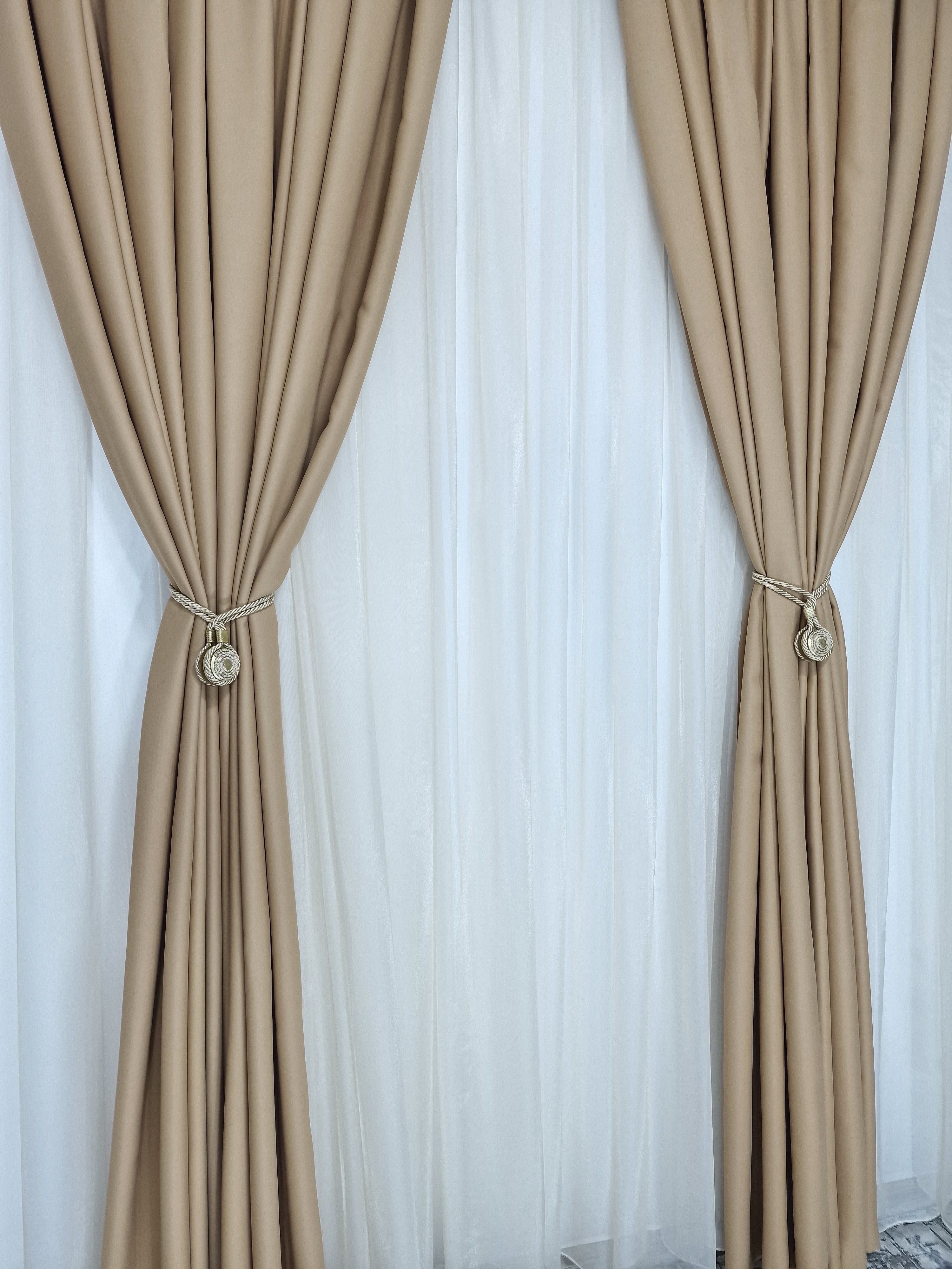 Set Perdea Voal Ivoire și Draperie Blackout Capucino – Luminozitate și Intimitate Completă