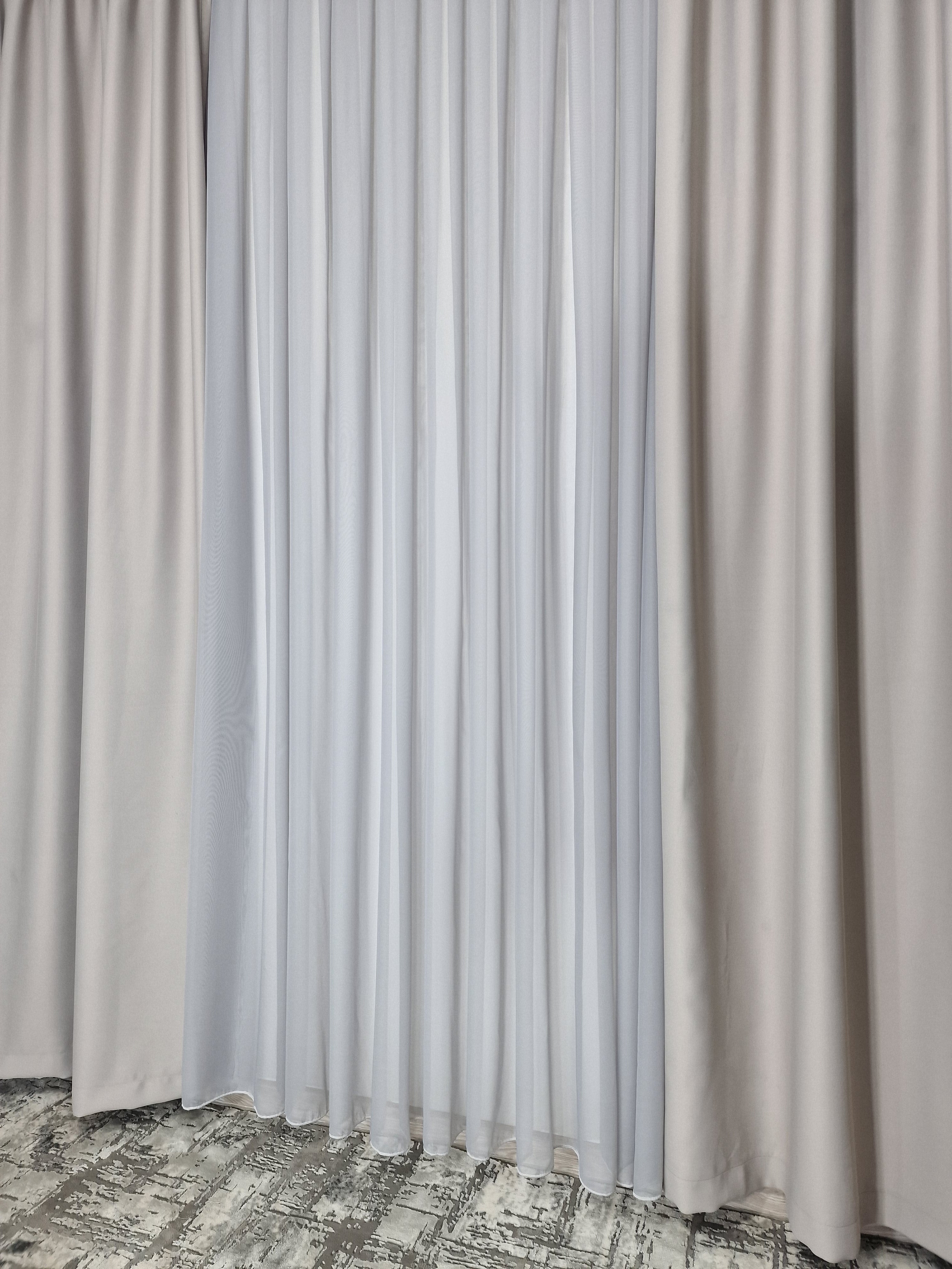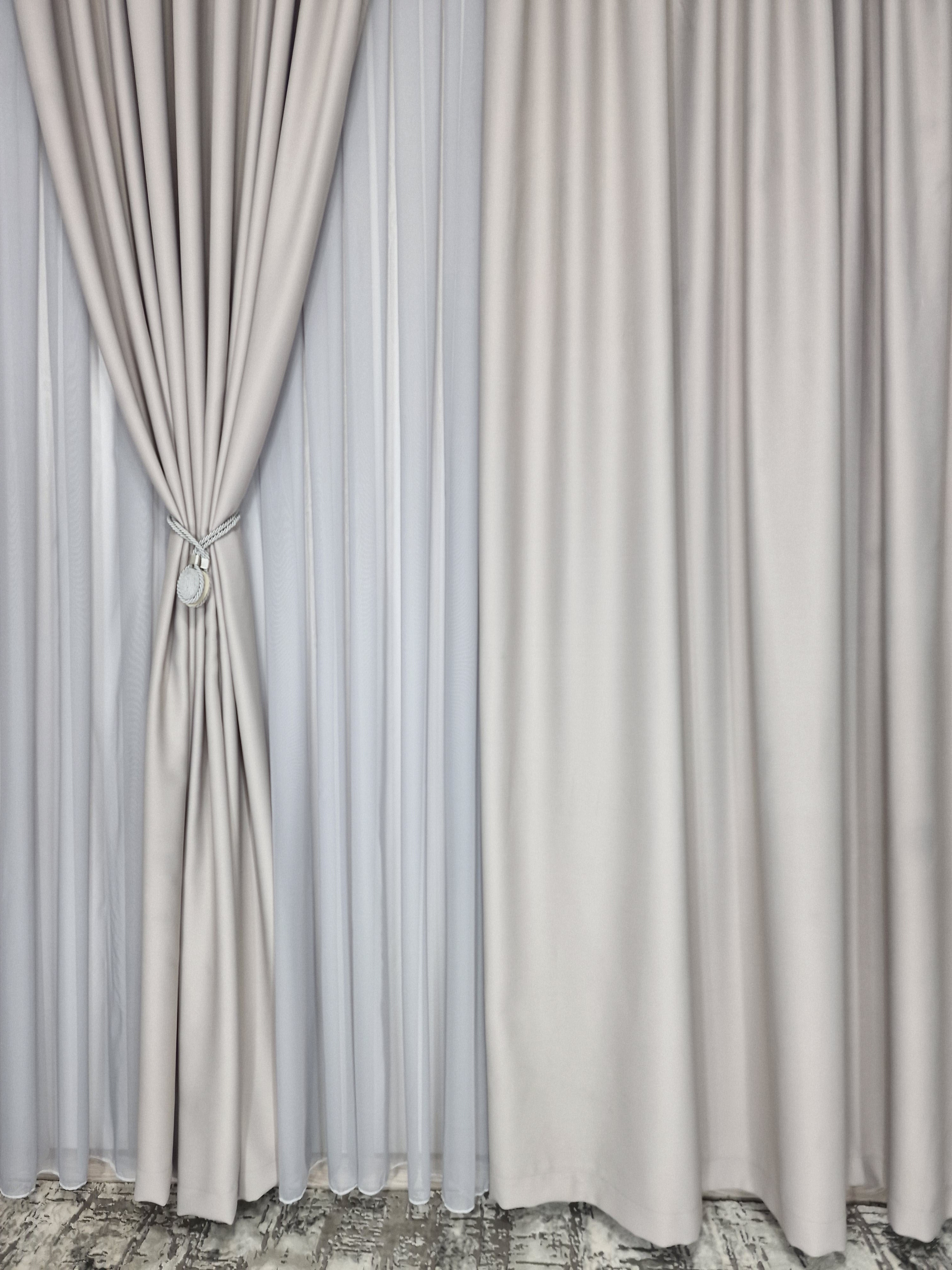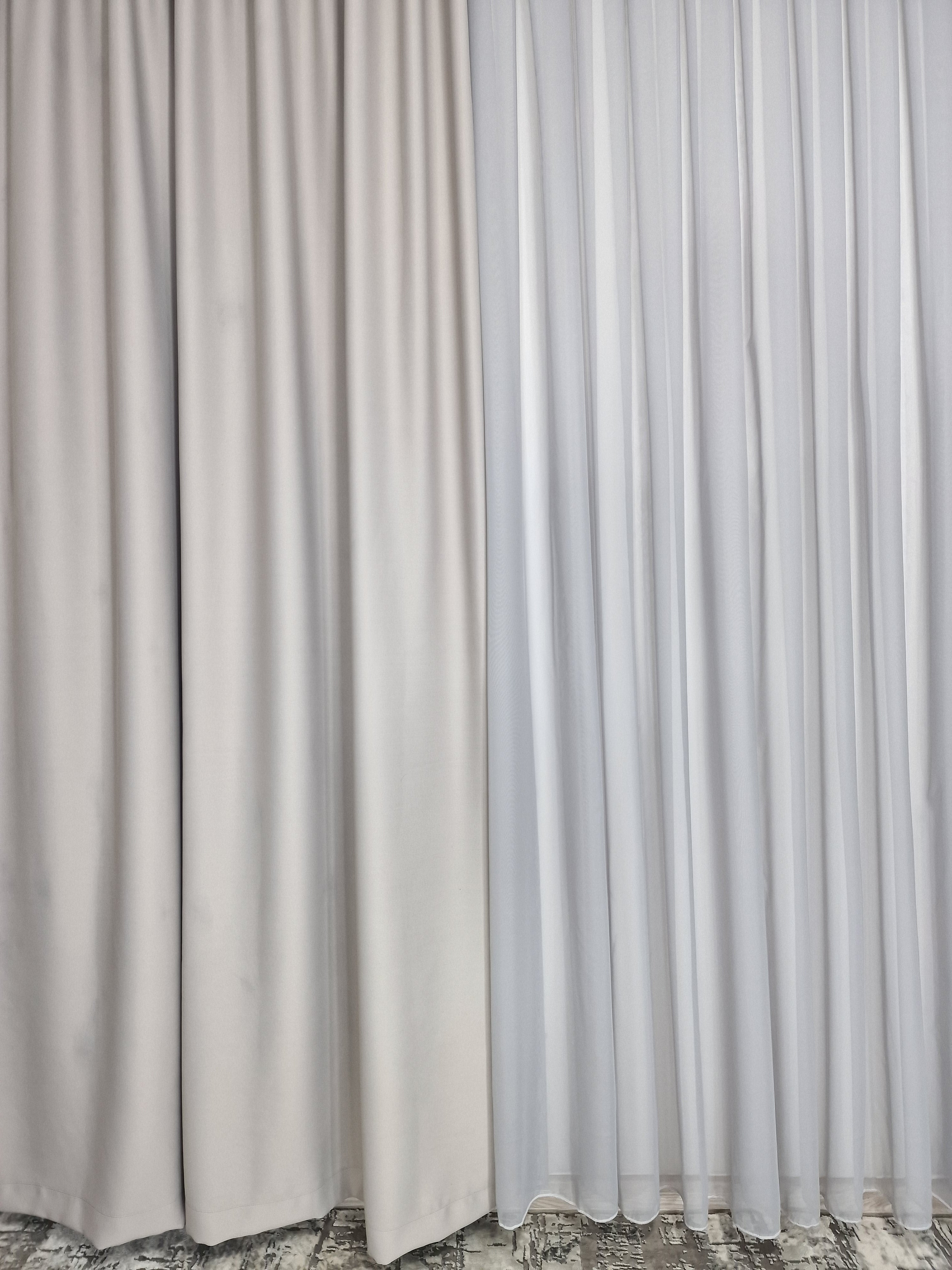 Adaugă acel touch contemporan și practic în casa ta cu setul nostru de perdea din voal gri și draperie uni blackout. Este alegerea perfectă pentru cei care doresc un design rafinat și o funcționalitate deosebită.