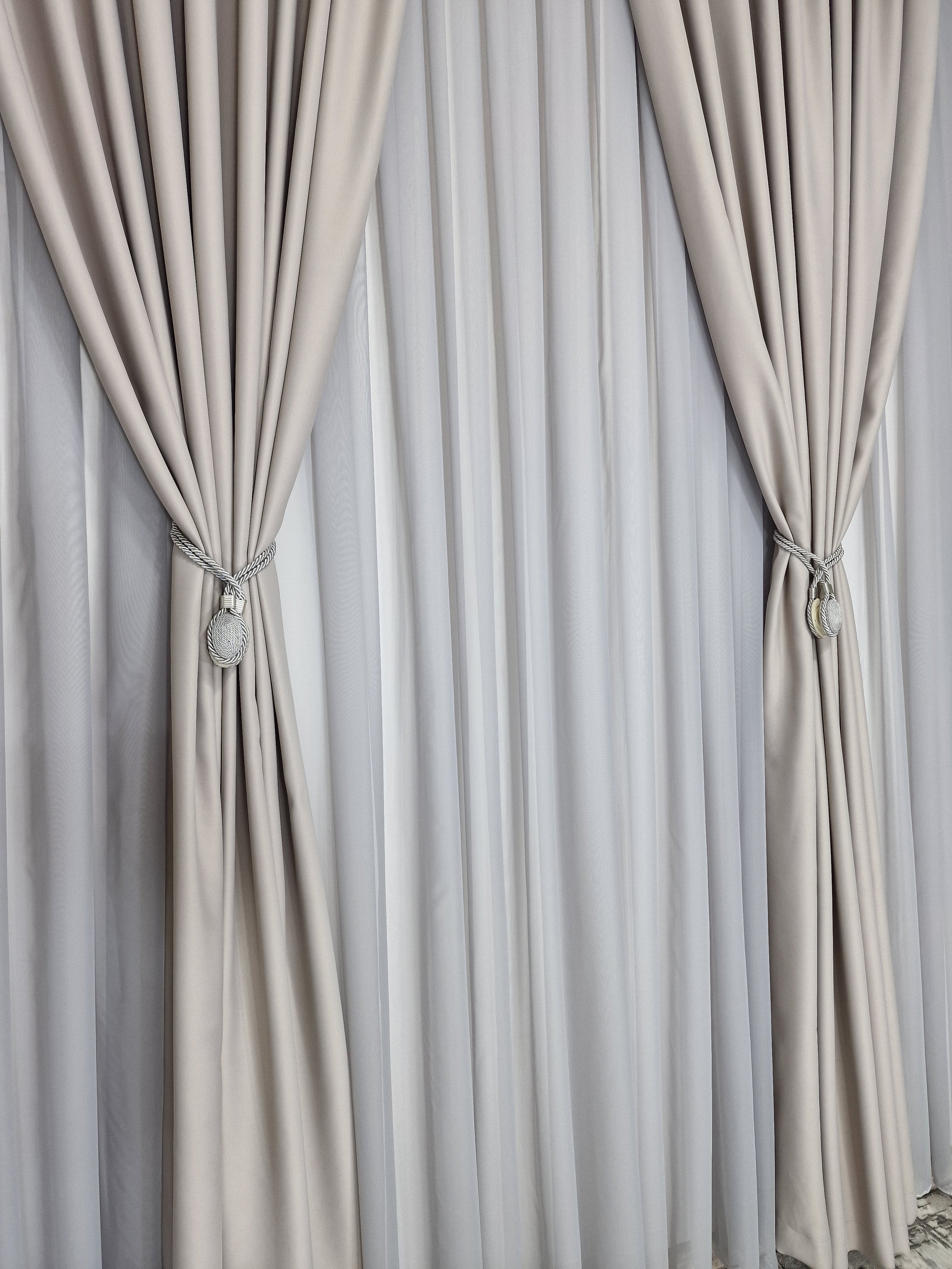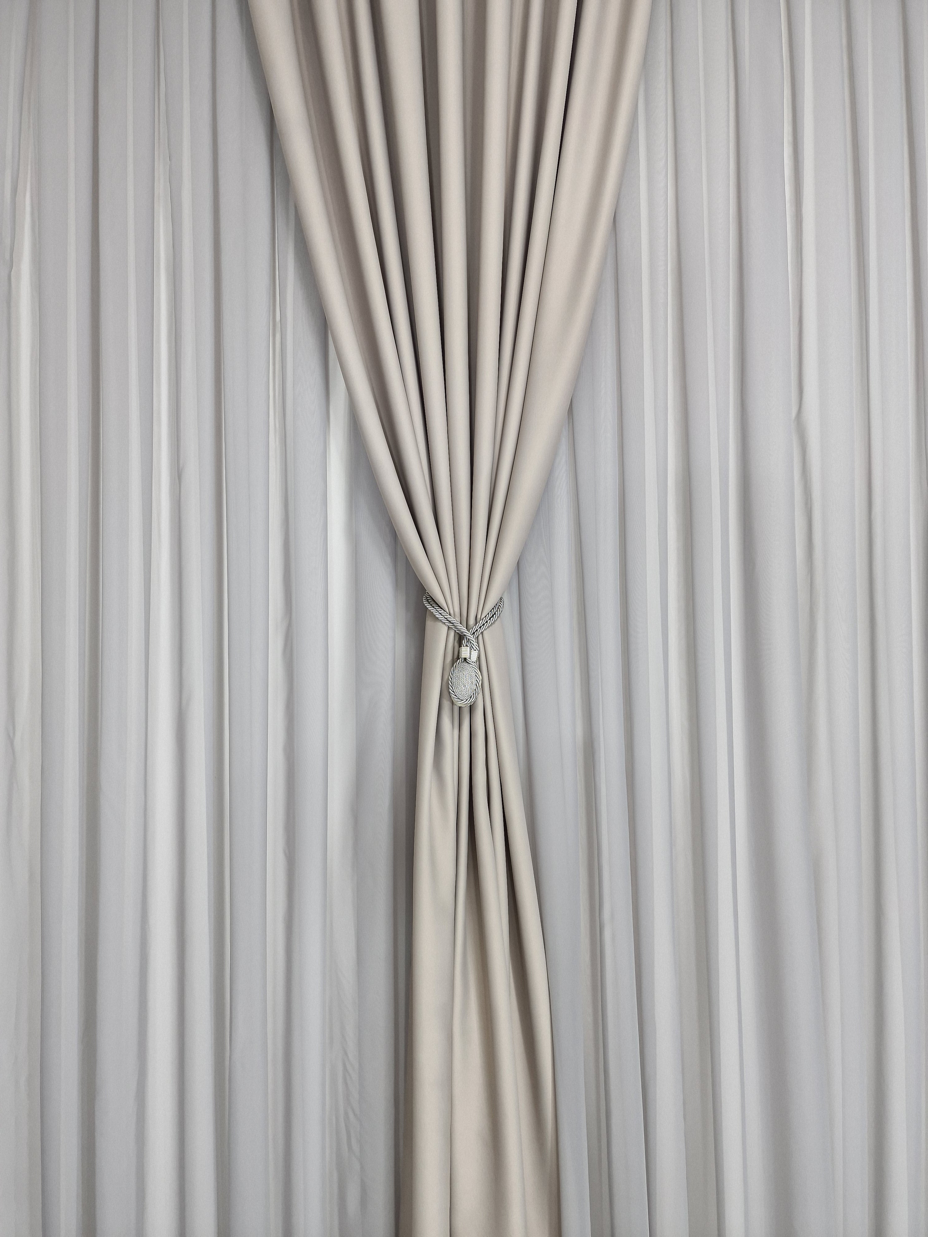 Transformă-ți spațiul într-un sanctuar modern de liniște și stil cu setul nostru elegant de perdea și draperie. Perdeaua din voal gri adaugă o notă subtilă de eleganță, creând o atmosferă deschisă și luminoasă în cameră.