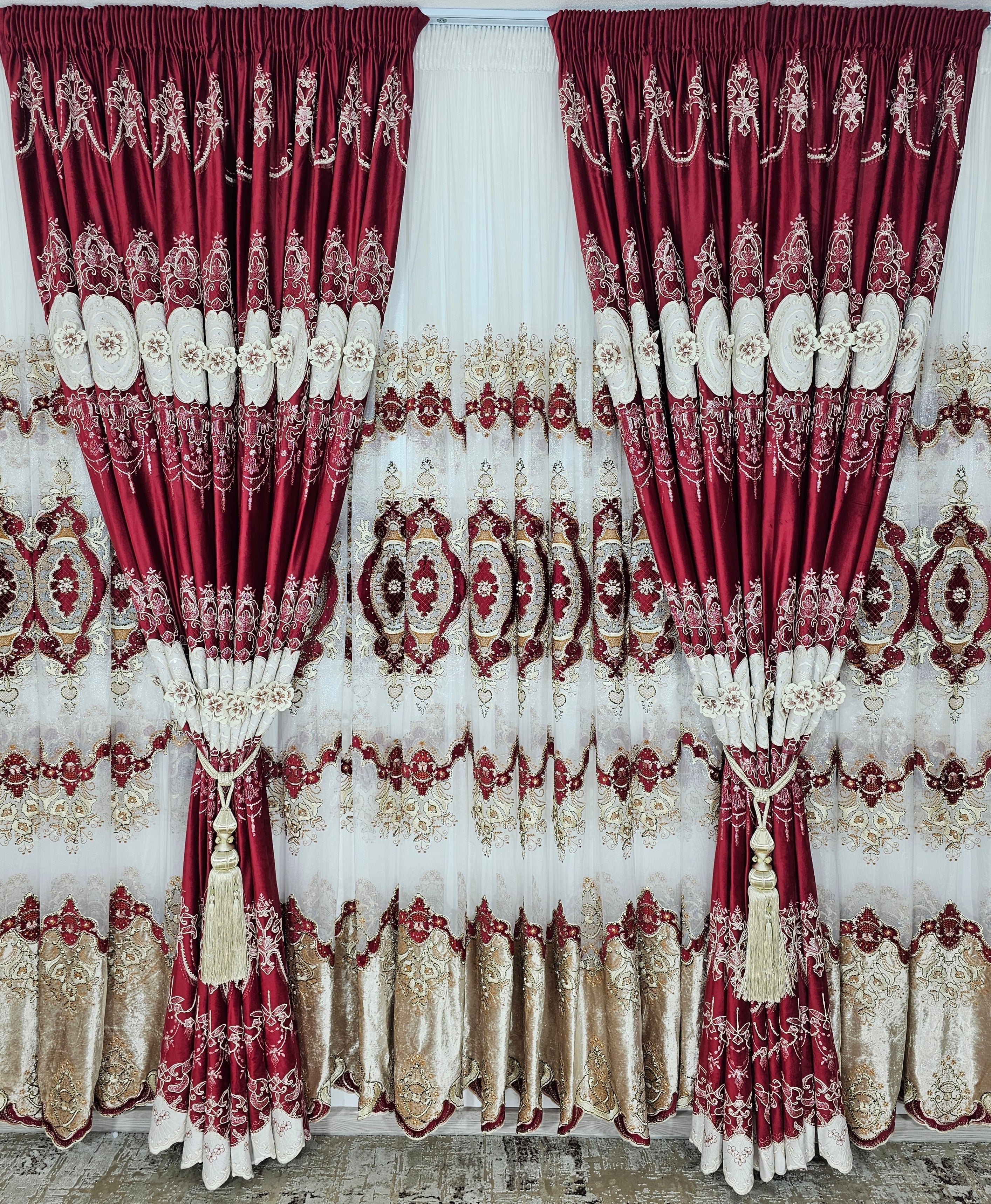 Perdea din Tul cu Broderie 3D și Draperie din Catifea Roșie 3D ðŸ¤â¤ï¸âœ¨