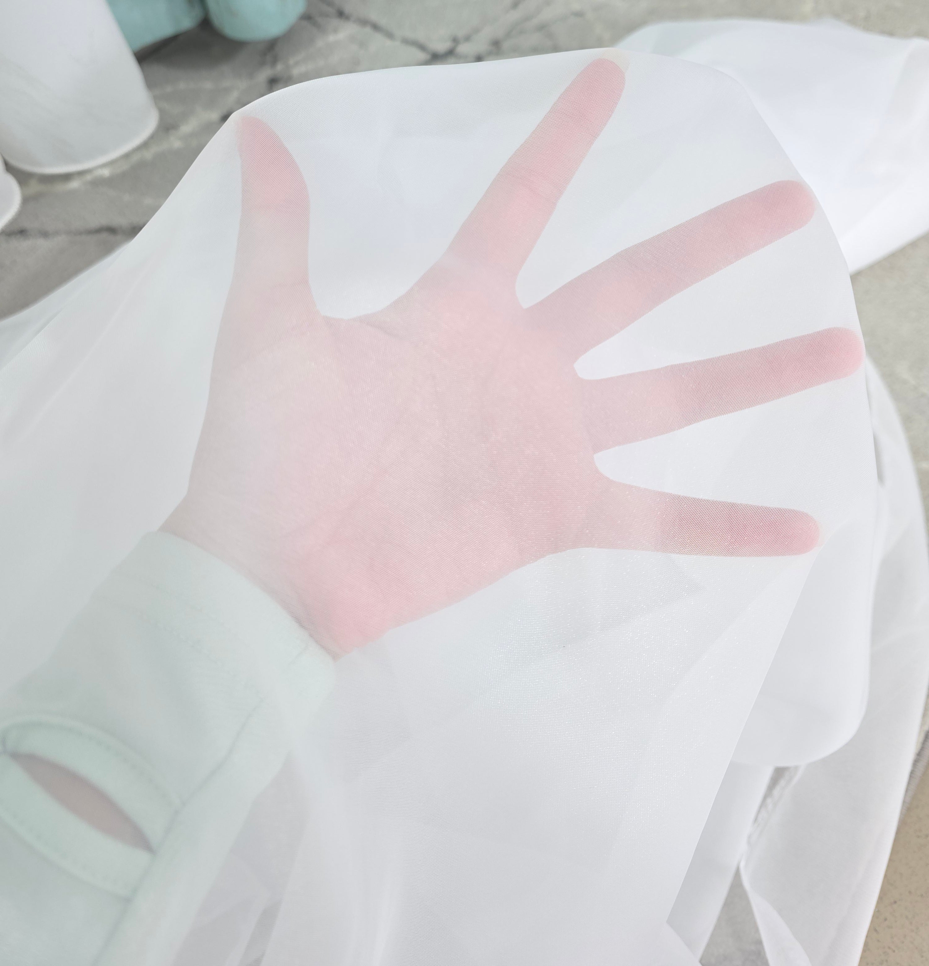 Material: voal fin, ușor și vaporos – drapaj fluid și natural